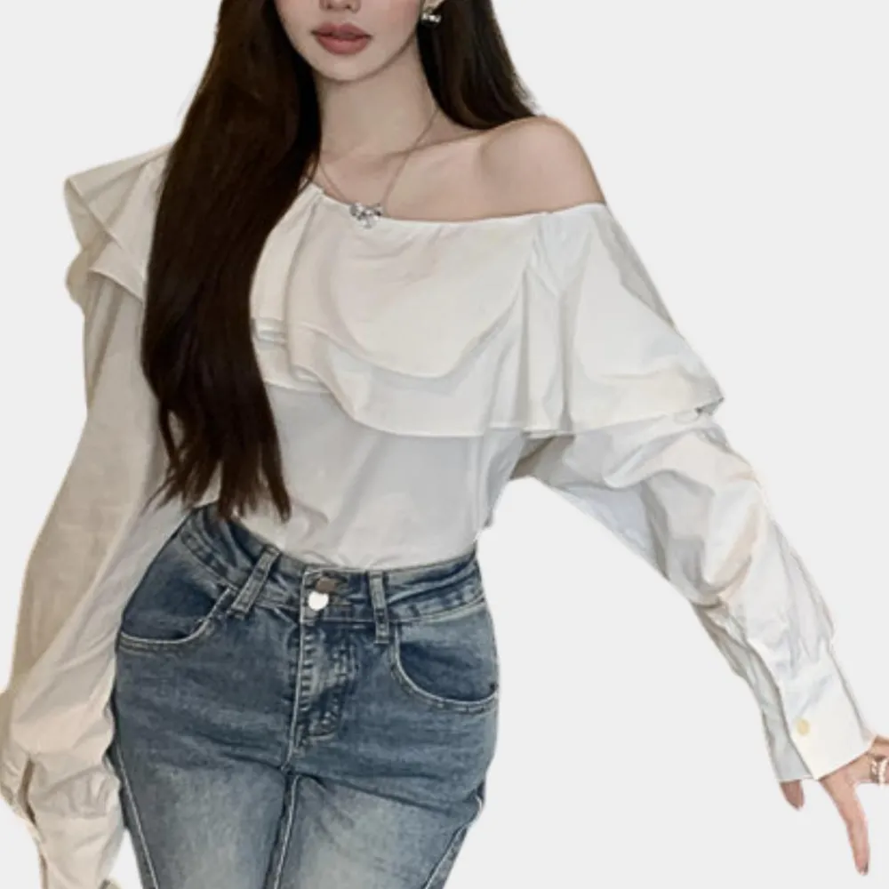 De Alena Elegante Off-Shoulder Blouse voor Dames. Deze blouse benadrukt een geraffineerde mix van stijl en eenvoud, perfect voor zowel modeprofessionals als casual zomerlooks. Het doordachte ontwerp biedt zowel comfort als een verfijnde look.