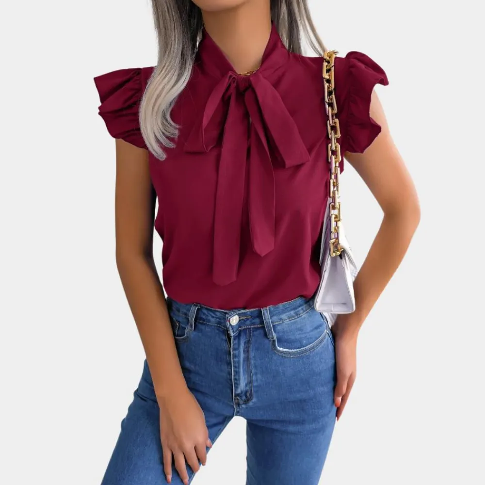 Lichte zomerblouse met vlinderdas en mouwen. Deze Gail Dames zomerblouse met stakkraag is geschikt voor de warmere maanden en kun je gemakkelijk stylen.