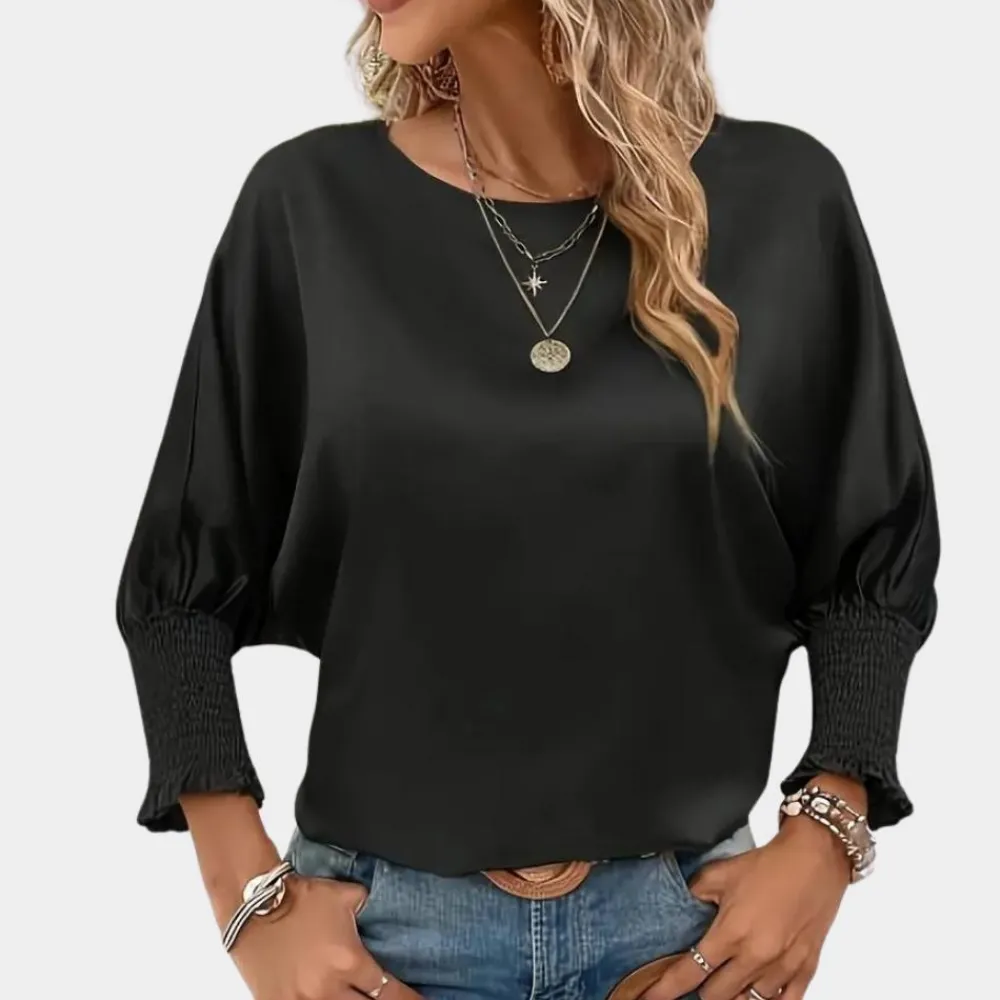 Onze Zuzanka Eenvoudige damesblouse met ronde hals heeft een mooie vorm die je rondingen benadrukt en je een vrouwelijke uitstraling geeft.