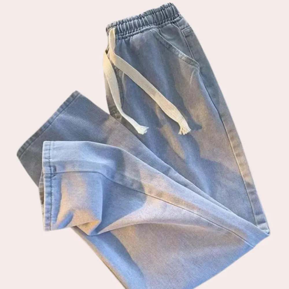 Het stevige denimmateriaal gaat lang mee, terwijl het relaxte ontwerp optimaal comfort biedt voor verschillende activiteiten. Of je nu boodschappen doet, vrienden ontmoet of thuis ontspant, deze broek biedt de ideale combinatie van functionaliteit en mode.