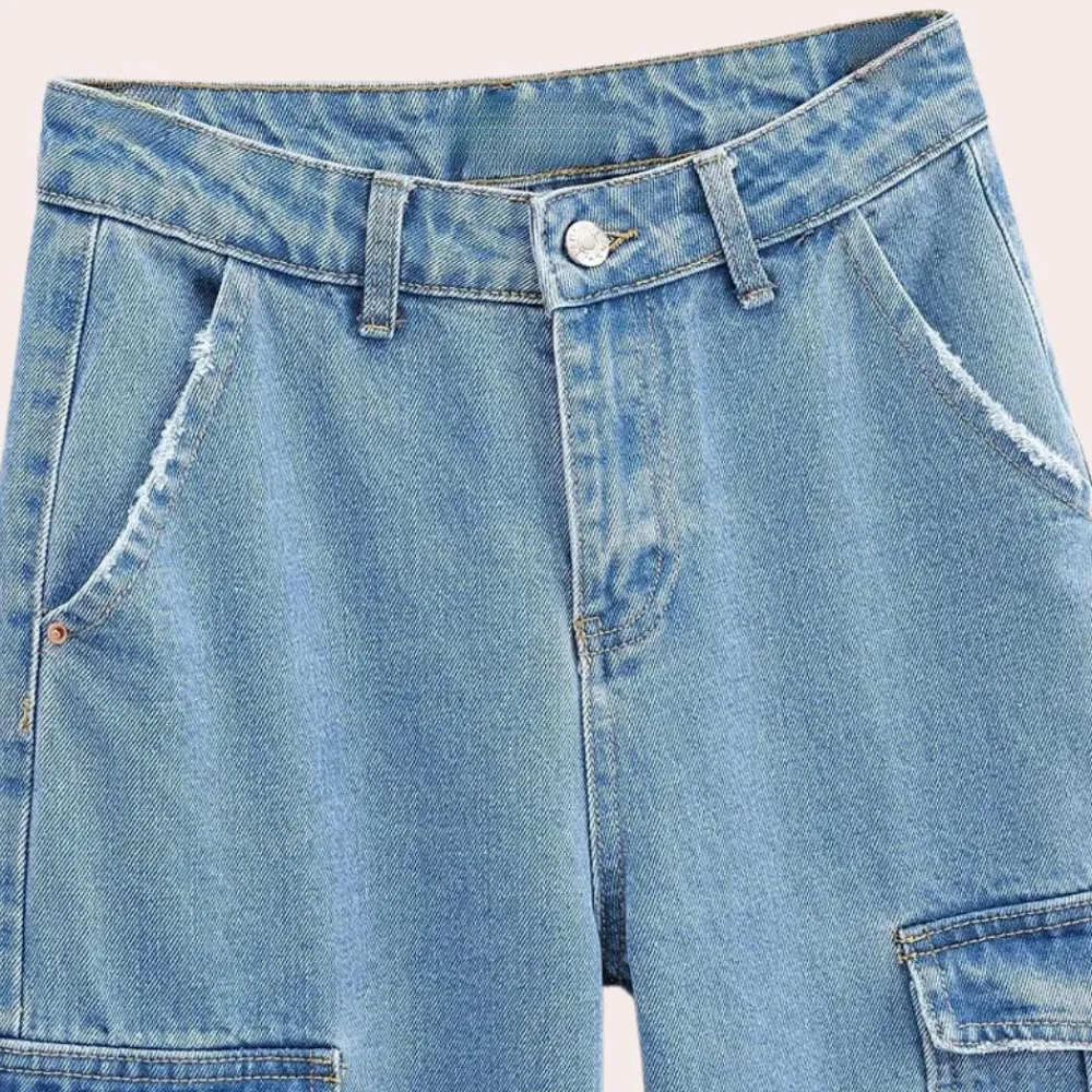 Ontdek Mailani Stijlvolle Denim Cargo Broek voor Dames – een unieke combinatie van praktische details en een casual look. Deze broek biedt de veelzijdigheid van een cargobroek, met een stijlvol denim accent.