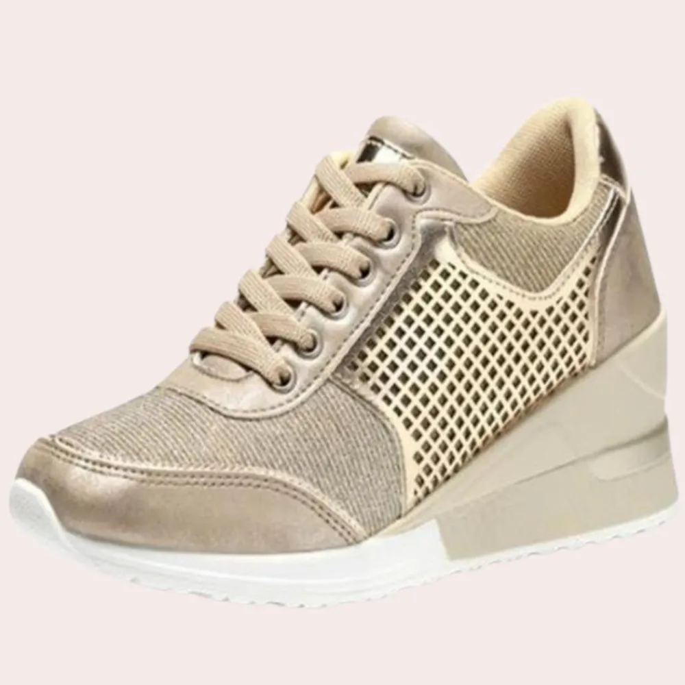 Verhoog elke stap met onze Xandra Stijlvolle sneakers met sleehakken, ontworpen voor de vrouw van vandaag. Deze hoge sneakers zijn gemaakt van het fijnste microvezelmateriaal en combineren moeiteloos stijl met comfort. Het ademende materiaal houdt je voeten fris en ontspannen, terwijl de hoge hak een vleugje verfijning toevoegt aan je outfit.