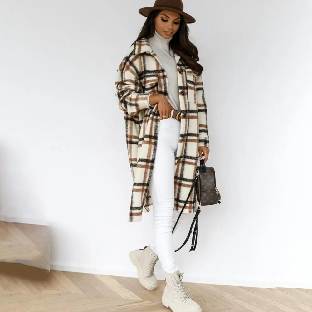 Wil je voor een chique en casual kiezen met onze geruite lange jas voor dames?