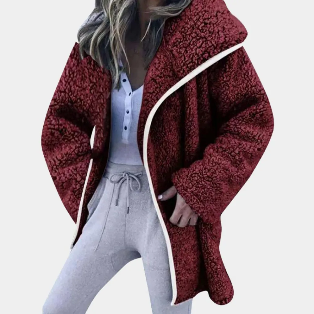 Deze jas is gemaakt van superzachte pluche materialen en zorgt voor een aangename en comfortabele ervaring, perfect voor casual uitjes of ontspannen avonden. De capuchon voegt een extra laag functionaliteit toe, terwijl het doordachte ontwerp zorgt voor een flatterende pasvorm. Met de ruime zakken is het handig om altijd je essentiële spullen bij je te hebben.