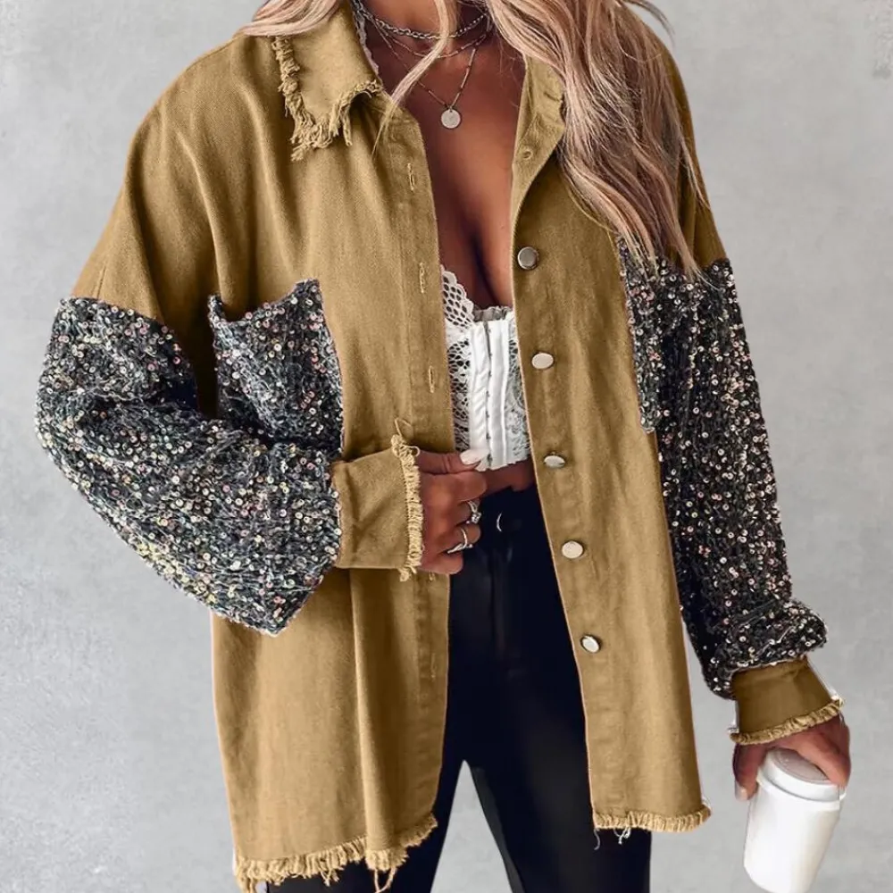 Verhoog je garderobe met de Delilah Pailletten Jacket en laat je stijl schitteren, waar je ook gaat!