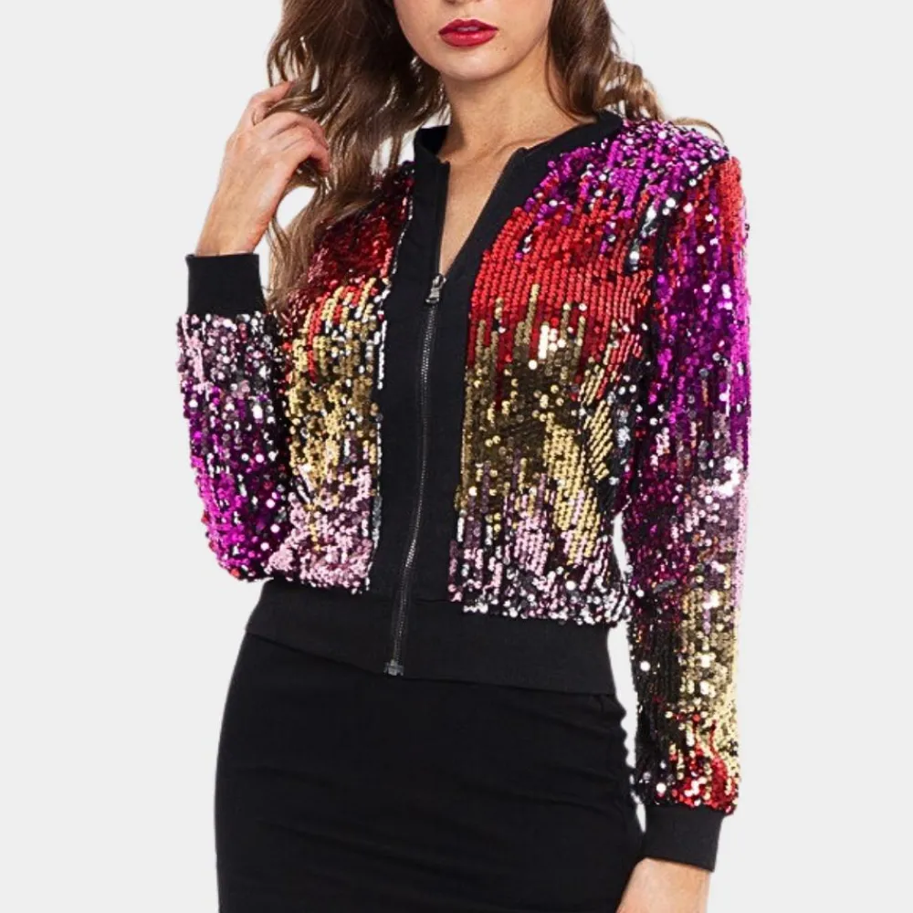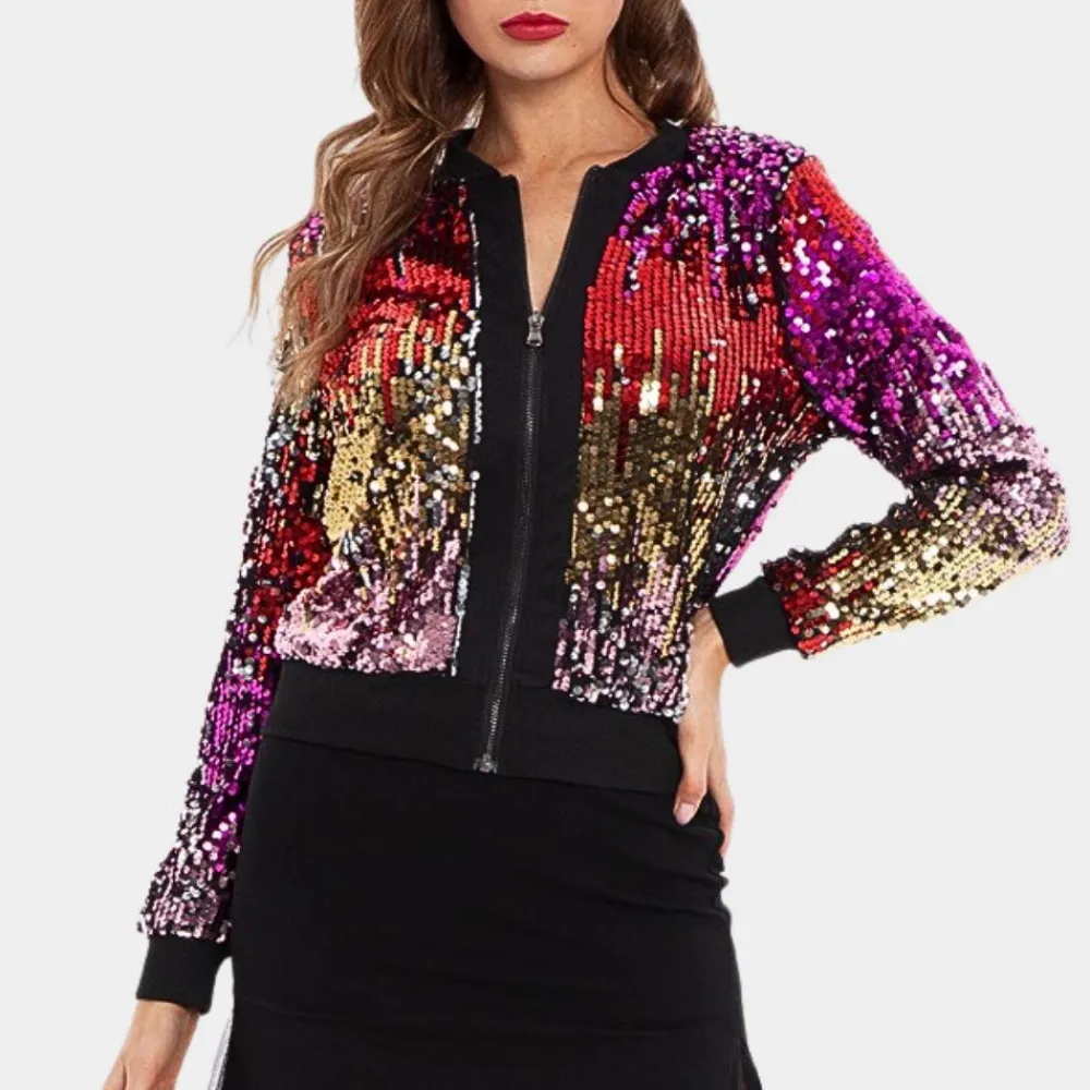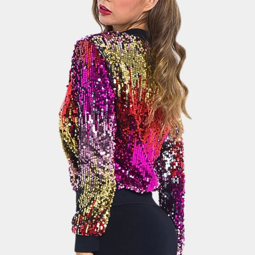 De glinsterende pailletten creëren een opvallend effect, ideaal voor speciale evenementen of om een krachtige indruk te maken. Het korte ontwerp biedt een eigentijdse look en is perfect te combineren met jurken, hoog getailleerde broeken of rokken voor een geraffineerde, modieuze look.