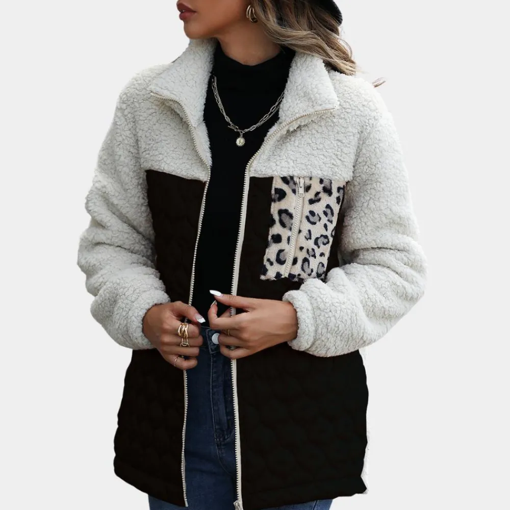 De Estefania Modieuze Plush Jas voor de Elegante Dame biedt zowel warmte als een modieuze look tijdens de koudere maanden. De comfortabele stof en het unieke patchworkdesign maken deze jas perfect voor de wintergarderobe. Met handige zakken en een ritssluiting, en een opstaande kraag die je beschermt tegen de kou, is deze jas geschikt voor de lente, herfst en winter.