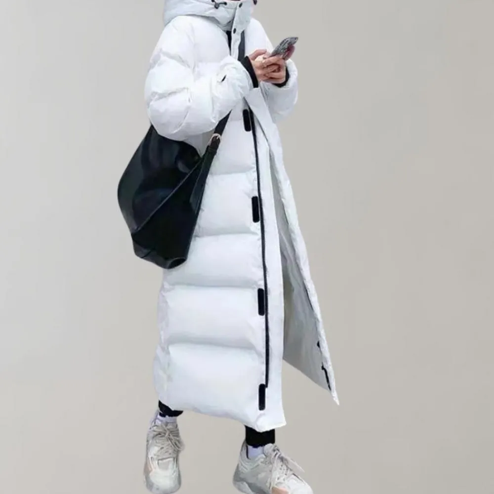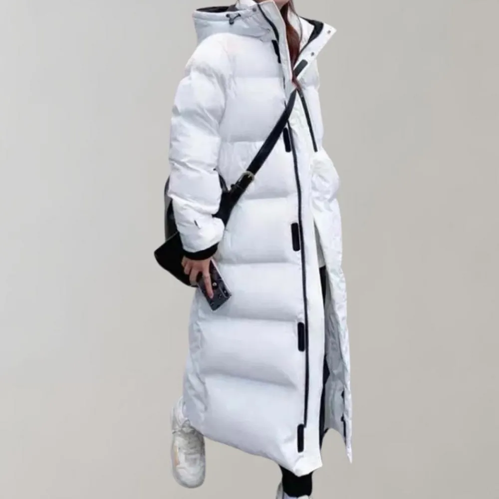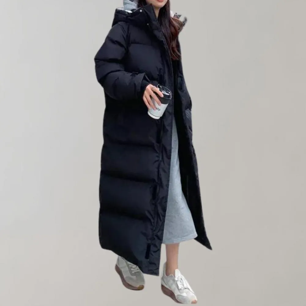 Je kunt de Jaana Warme en lange damesjas zowel overdag als ’s avonds dragen. Combineer het met sportschoenen voor een casual uitje.