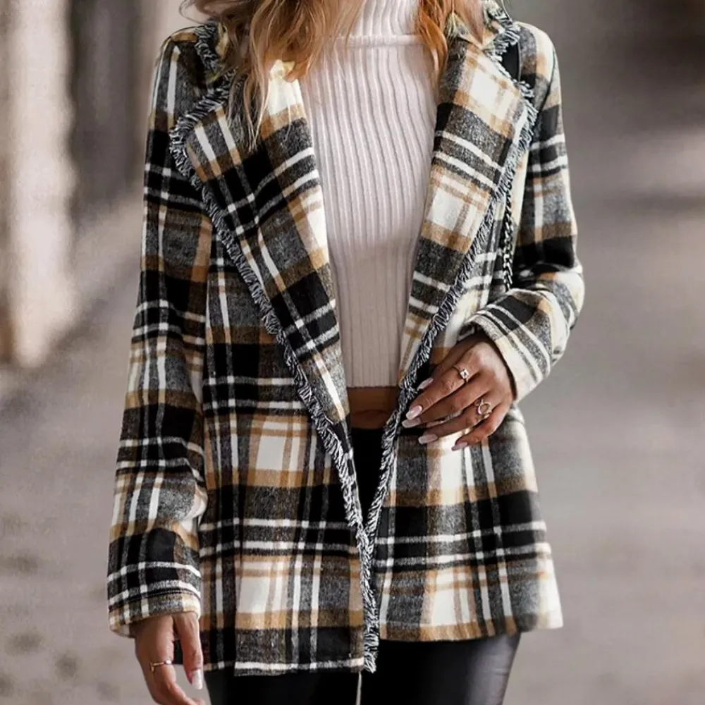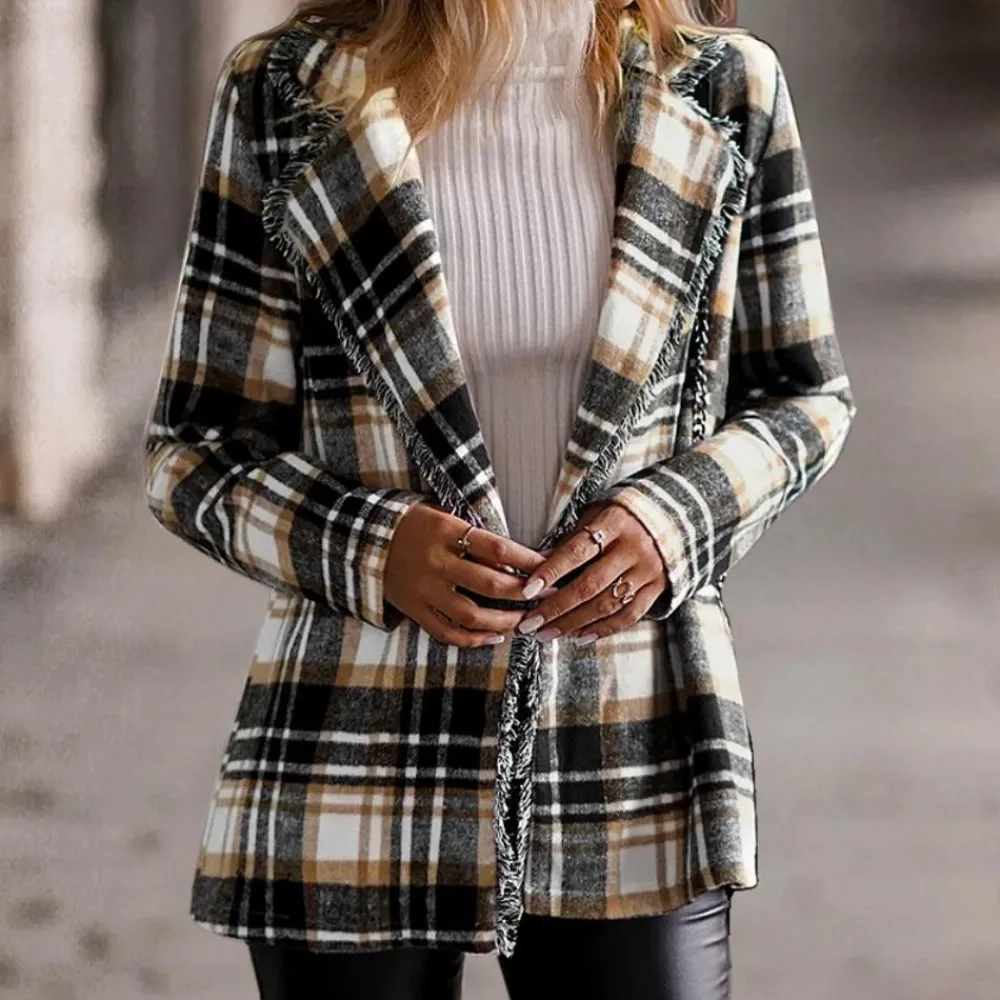 Upgrade je look met onze Kaia Comfortabele geruite damesjas voor elke dag. Het tijdloze geruite patroon brengt stijl naar elke outfit, terwijl de lange mouwen zowel warmte als flexibiliteit bieden voor elk seizoen. Ideaal voor modebewuste mensen die graag opvallen.