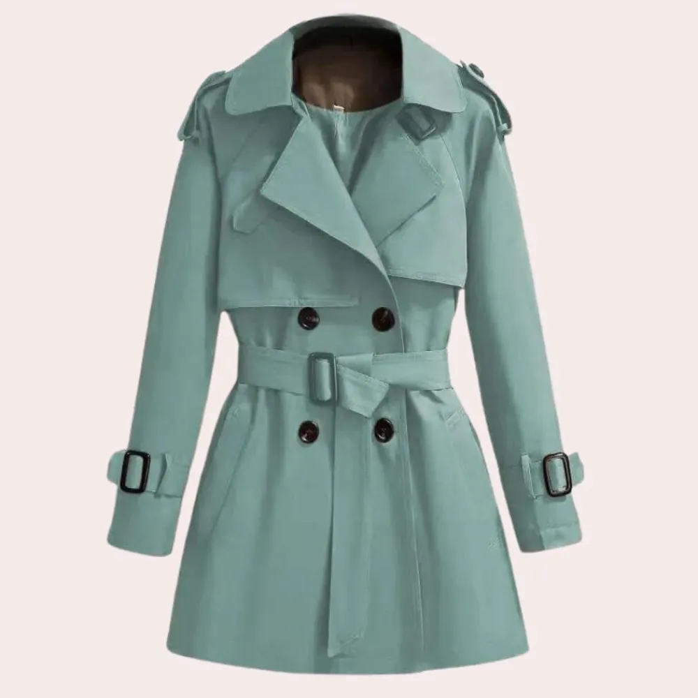 De Apolline Windjack voor dames, met stof bedekte drukknopen, een afneembare riem en een split op de rug, combineert mode en functie perfect. Deze jas van hoge kwaliteit is een must-have voor elke vrouw.
