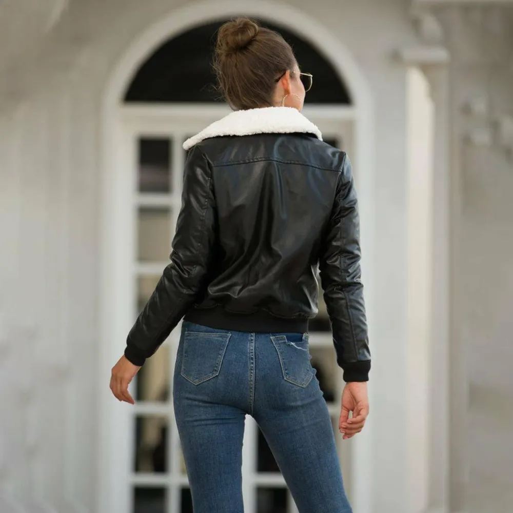 - Zacht en knus: De pluche kraag geeft deze jas van faux leer extra warmte en comfort.