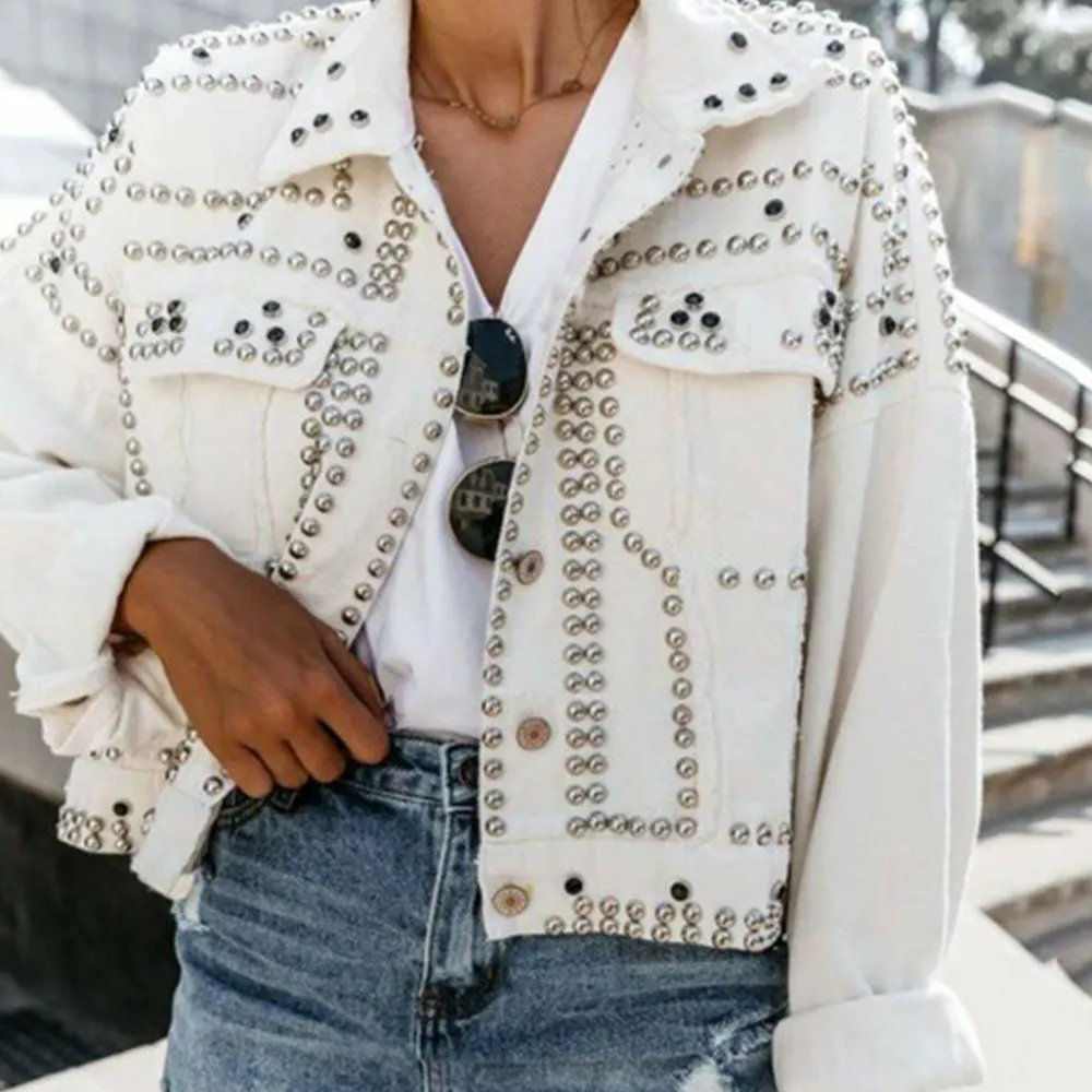 Dit casual denim damesjack met klinknagels is de perfecte top voor jouw individuele look. Gemaakt van eersteklas polyester en met uitneembare voering maakt het een must-have in je garderobe. Een stijlvol compromis tussen stijl en comfort.