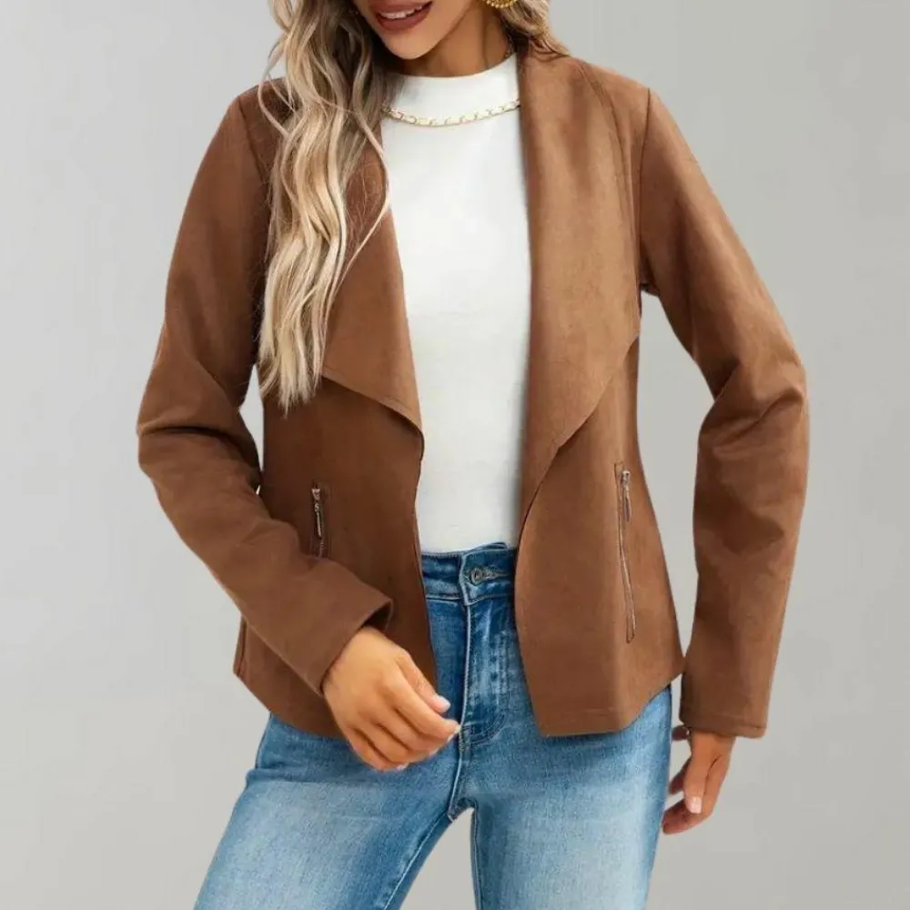 Hier heb je onze Maiuc Stijlvol suède damesjack, deze jas is zowel comfortabel als stijlvol voor uitgaan, maar ook voor thuis op de bank. Deze jas is gemaakt van een comfortabele stof die geschikt is voor de lente, herfst en winter.