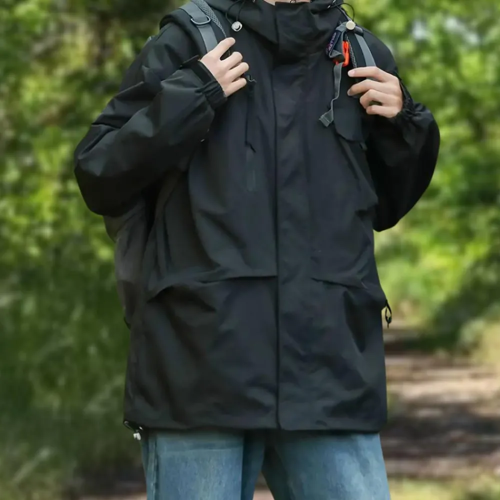 Deze waterdichte outdoorkleding houdt je droog en comfortabel, welke avonturen je ook beleeft. Verschillende zakken met ritsen voor het opbergen van uitrusting en waardevolle spullen. Gemaakt van een duurzame chemische vezelmix die je beschermt tegen stortbuien, terwijl de ademende binnenvoering zweet afvoert. Met volledige bescherming tegen weer en wind blijf je zowel buiten als binnen droog tijdens al je buitenactiviteiten.