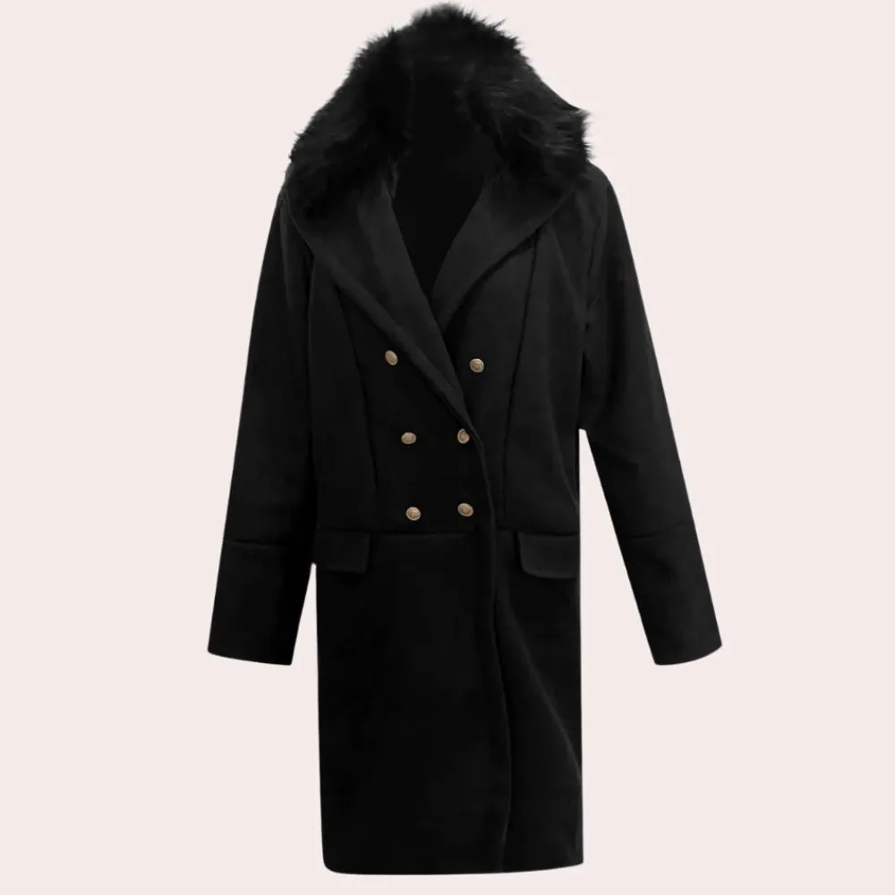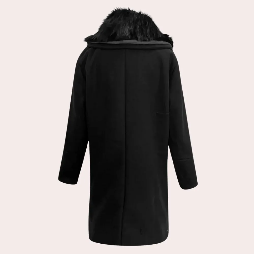 De opvallende dikke kraag voegt een vleugje verfijning en extra isolatie toe, zodat je comfortabel blijft tijdens de koudere dagen.