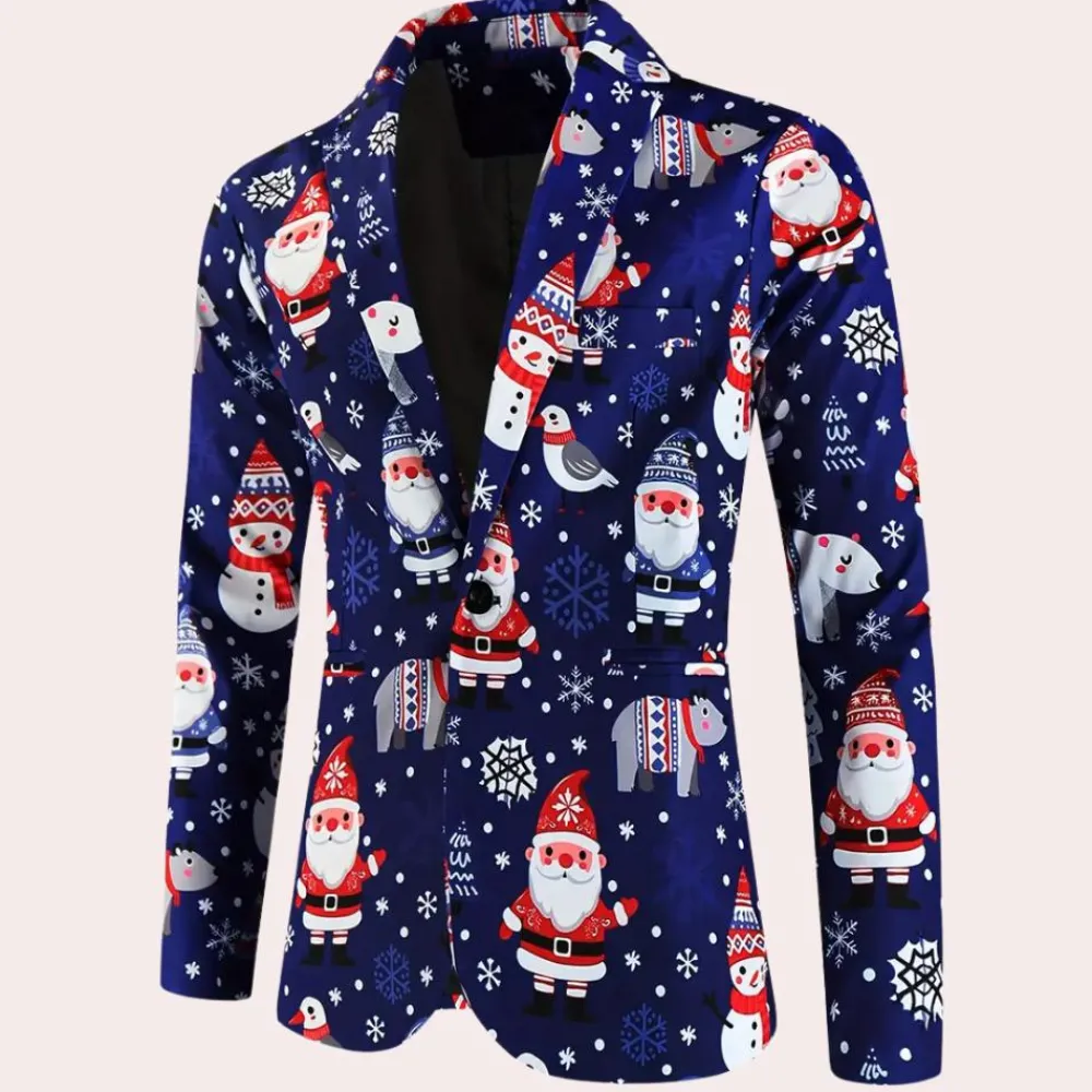 De REGGIS – Modieuze Kerstblazer voor Heren is de ideale keuze om je feestelijke stijl naar een hoger niveau te tillen. Deze blazer is perfect om een speelse indruk te maken op elke feestelijke bijeenkomst.
