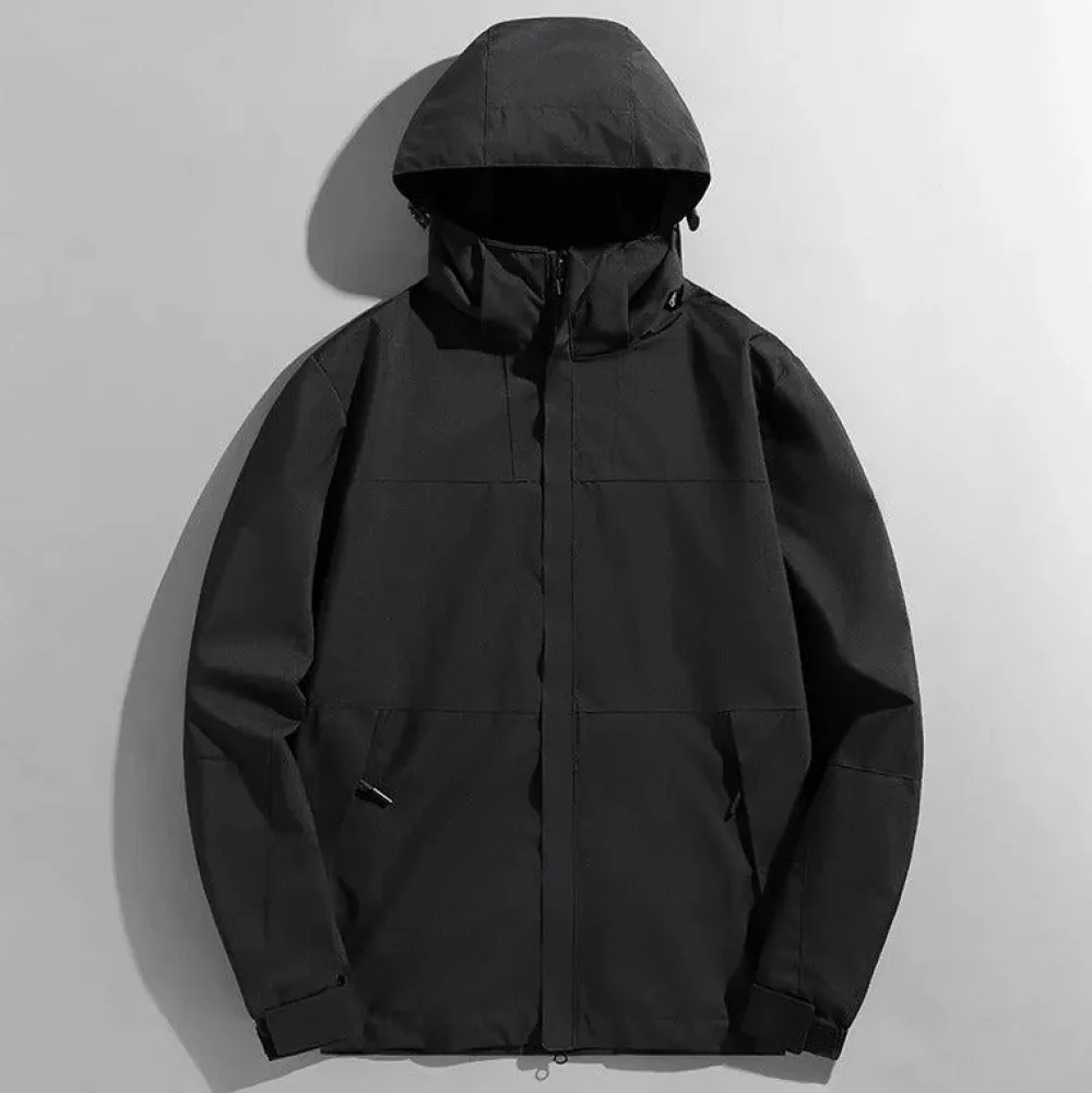De afneembare capuchon en opstaande kraag vormen een barrière tegen windvlagen en stortbuien, terwijl de rits aan de voorkant warmte vasthoudt. Lange mouwen bieden bedekking en handige zakken met rits houden je telefoon, portemonnee en andere dagelijkse benodigdheden droog.