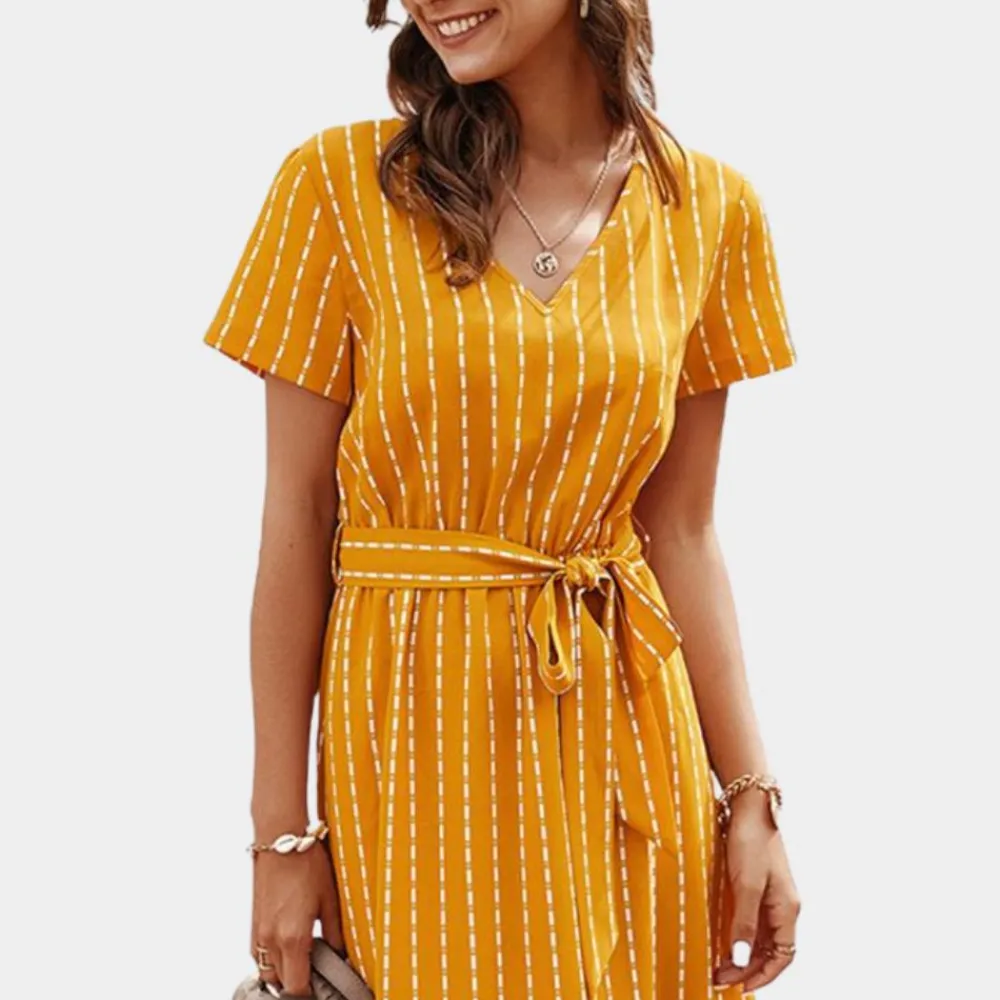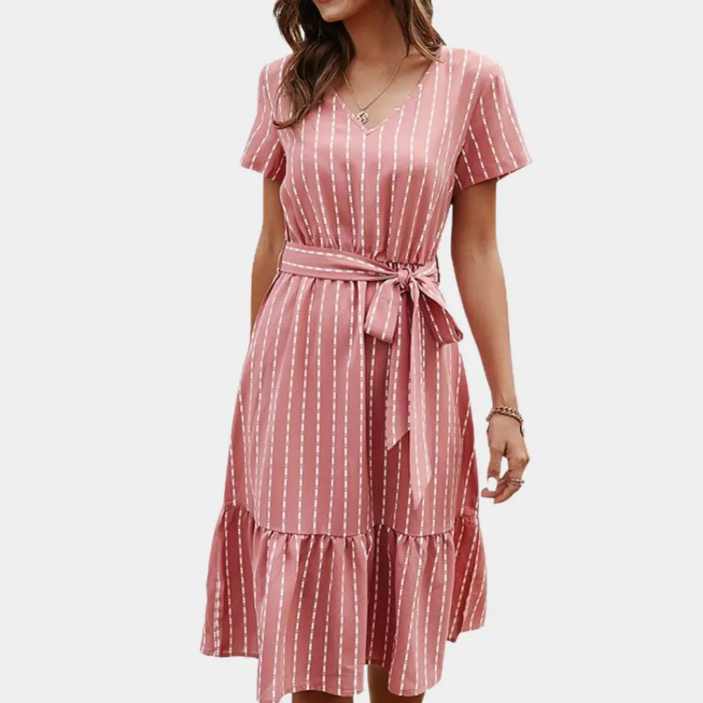 - Veelzijdige stijl – Met zijn veelzijdige stijl past deze jurk zich moeiteloos aan elke gelegenheid aan, of het nu op het strand of een tuinfeest is.