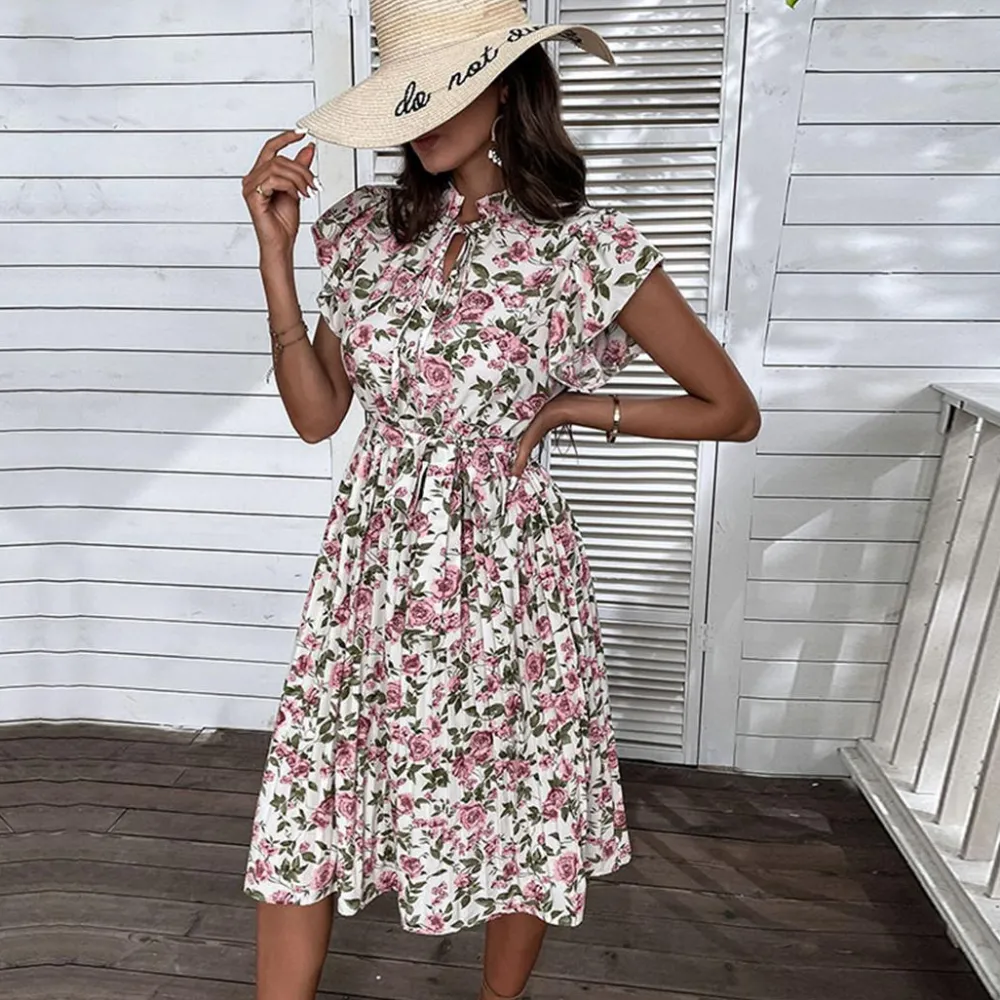 Deze prachtige mid-rise jurk heeft een prachtig roze rozenpatroon dat vrouwelijkheid en charme uitstraalt. CAPUCINE Stijlvolle bloemenjurk is gemaakt van een vloeiende en lichtgewicht stof en heeft een flatterende en vrouwelijke pasvorm die perfect is voor alle lichaamstypes. De lengte halverwege de kuit geeft de jurk een elegante uitstraling en maakt hem geschikt voor verschillende gelegenheden.