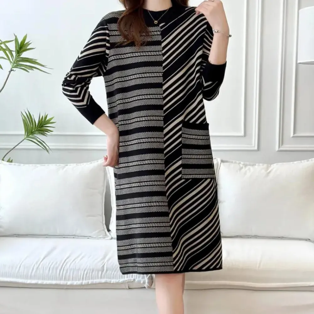De DIANELLA – Geraffineerde Jurk voor Dames is de ideale combinatie van ontspannen elegantie en veelzijdigheid. Met zijn gestreepte patroon en ruime pasvorm is het een onmisbaar onderdeel van je garderobe, perfect voor zowel casual als formele gelegenheden.
