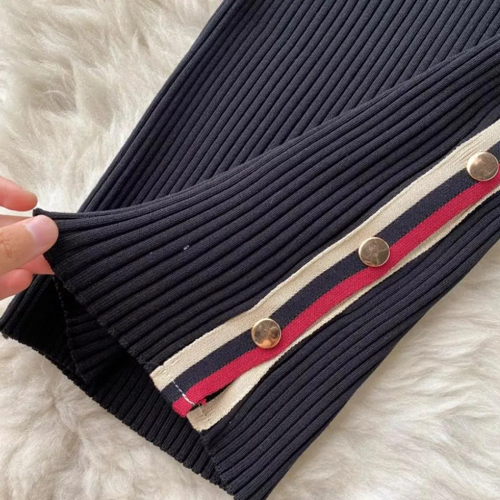 Trek Aandacht met de Eluned Gestreepte Gebreide Jurk voor Vrouwen – een ideale balans tussen comfort en stijl.