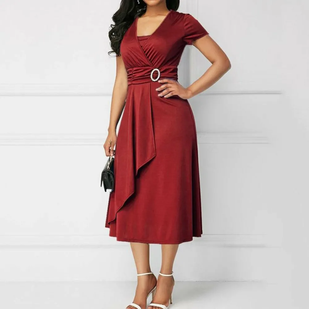 Gemaakt van de beste kwaliteit polyester, zorgt deze jurk voor een comfortabele en lichtgewicht pasvorm, zodat je koel en stijlvol blijft tijdens die warme zomerdagen. Verkrijgbaar in vier levendige kleuren – zwart, blauw, rood en donkergroen – heb je genoeg opties om je unieke stijl uit te drukken.