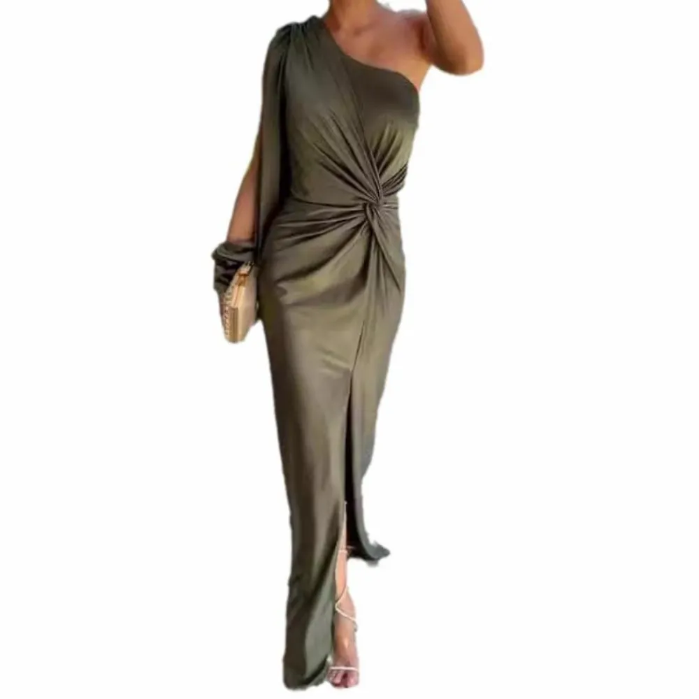 Of je nu kiest voor hakken en sieraden voor een formele gelegenheid, of sneakers draagt voor een casual look, de Kaylee Luxueuze Lange Jurk met Eén Schouder voor dames past zich moeiteloos aan jouw stijl aan.