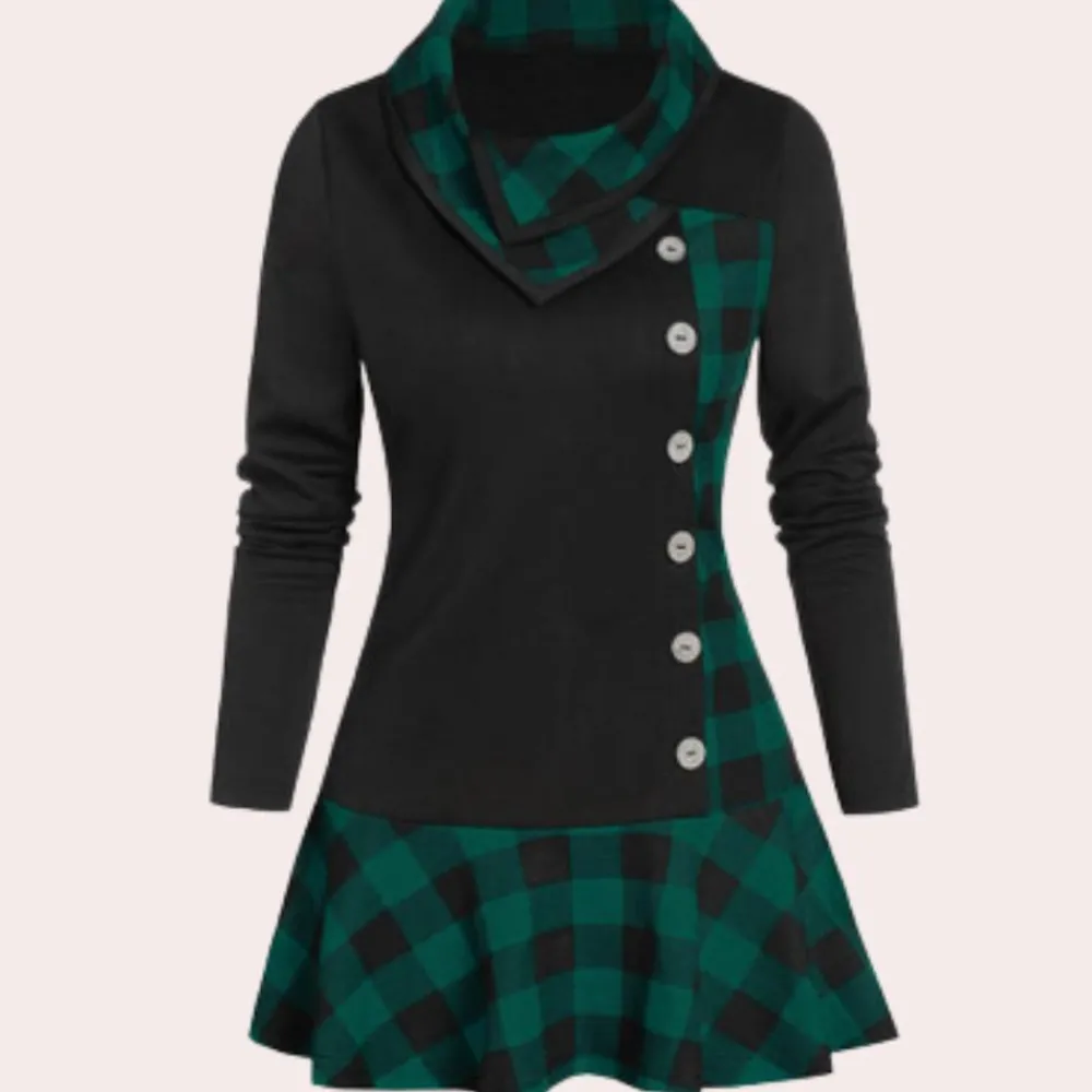 De Niki Tijdloze Midi-jurk met ruitmotief voor dames jurk heeft een moderne ruitprint en een unieke asymmetrische zoom, wat een trendy draai aan een klassiek patroon geeft. Perfect voor zowel casual uitjes als speciale evenementen, garandeert hij moeiteloze elegantie en helpt hij je opvallen.
