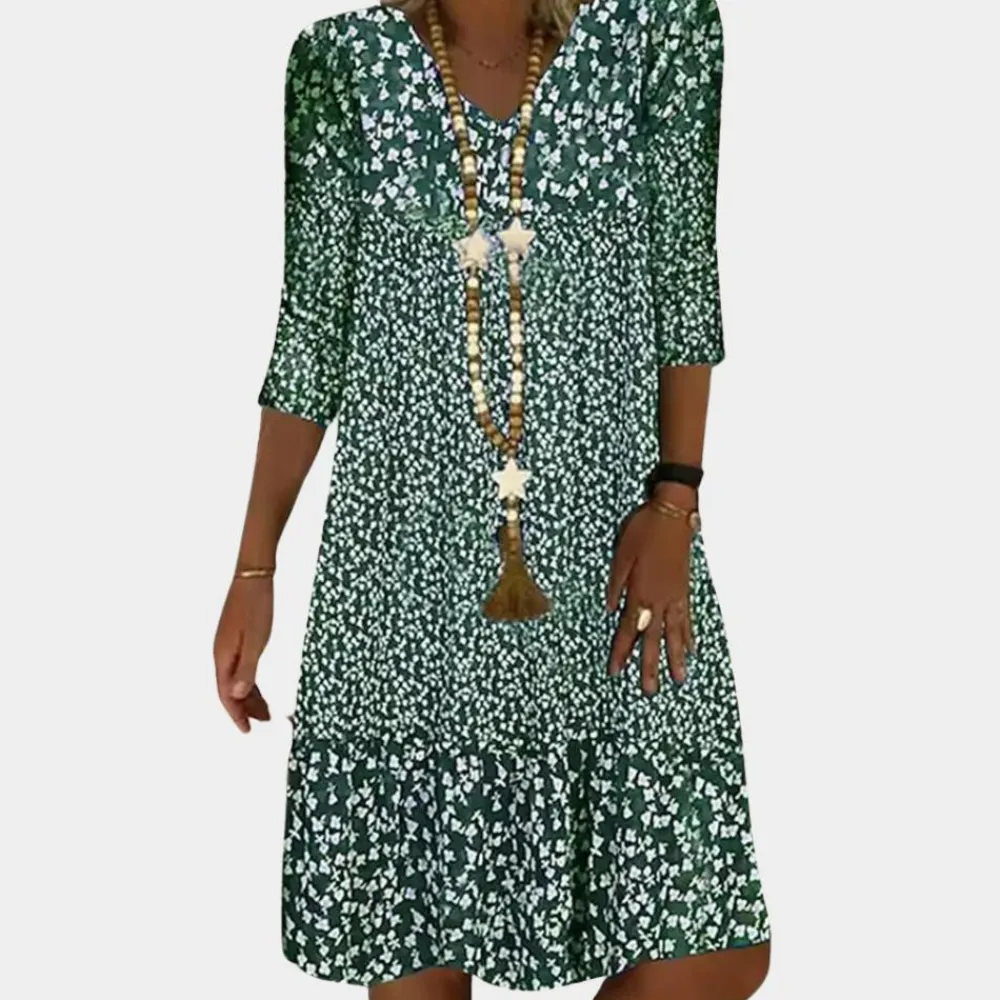 - Verfijnd en flatterend ontwerp: De Ottilie jurk is ontworpen om je natuurlijke schoonheid te accentueren met een V-hals en een halflange snit die perfect is voor zowel dagelijkse bezigheden als speciale gelegenheden.