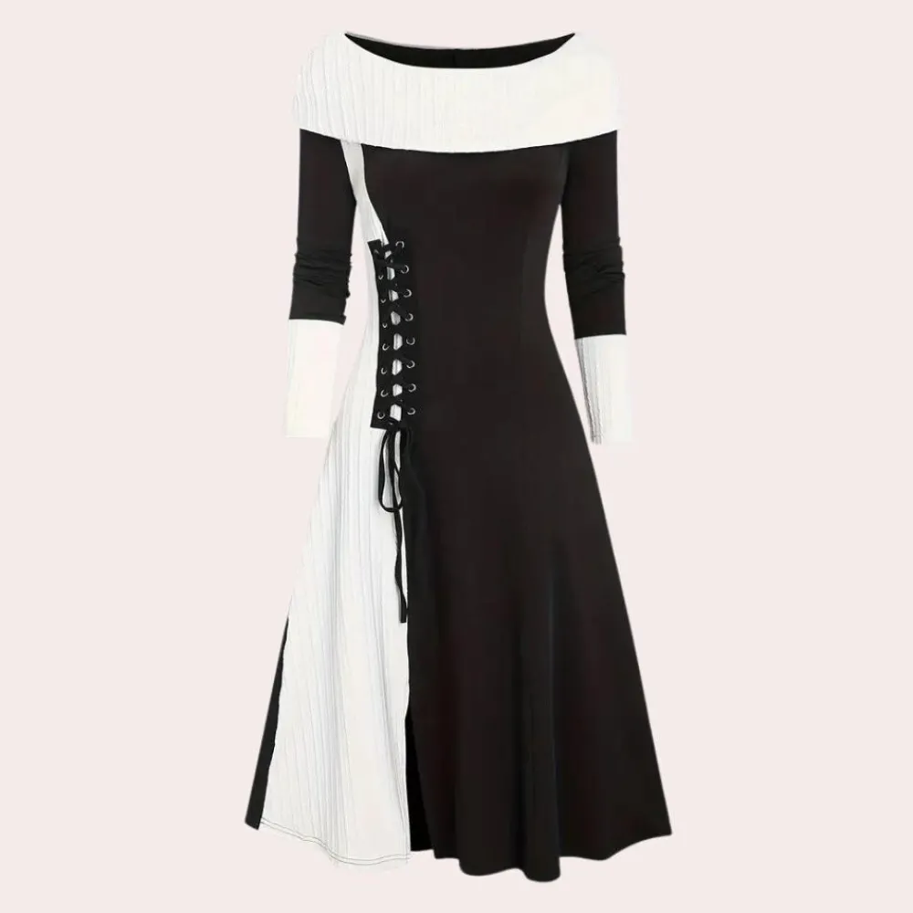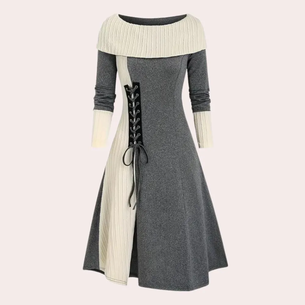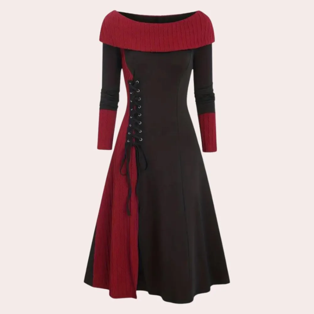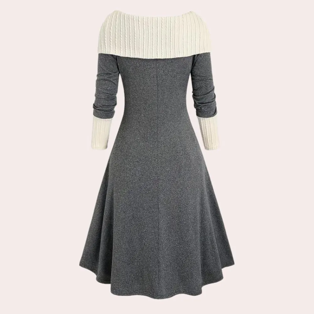 Maak kennis met onze Seraphine Damesjurk met bardothalslijn en A-lijn. Deze jurk combineert ultiem comfort met verfijnde elegantie, ideaal voor de koelere dagen waarop je er verzorgd uit wilt zien. De jurk is vervaardigd van een zachte, warme stof die je behaaglijk houdt, perfect voor de herfst- en wintermaanden.