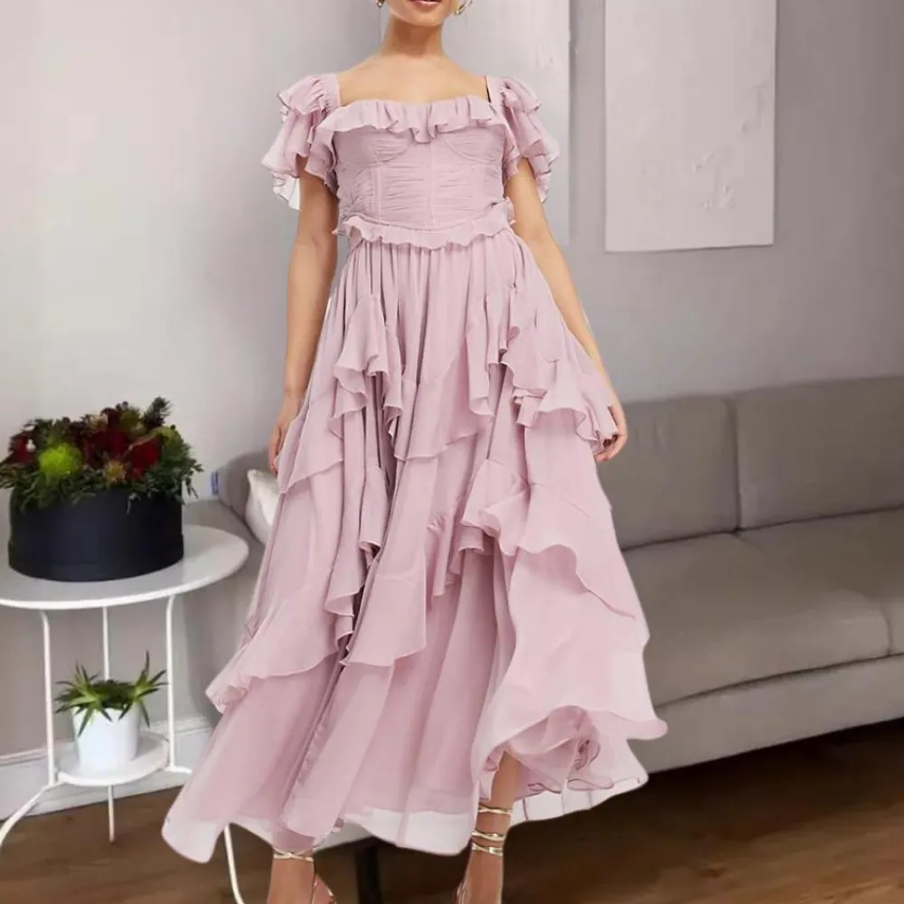 Onze Ula Elegante Jurk met Laagjes voor Dames is ontworpen om je figuur te accentueren, met een vrouwelijke pasvorm die gratie en zelfvertrouwen uitstraalt.