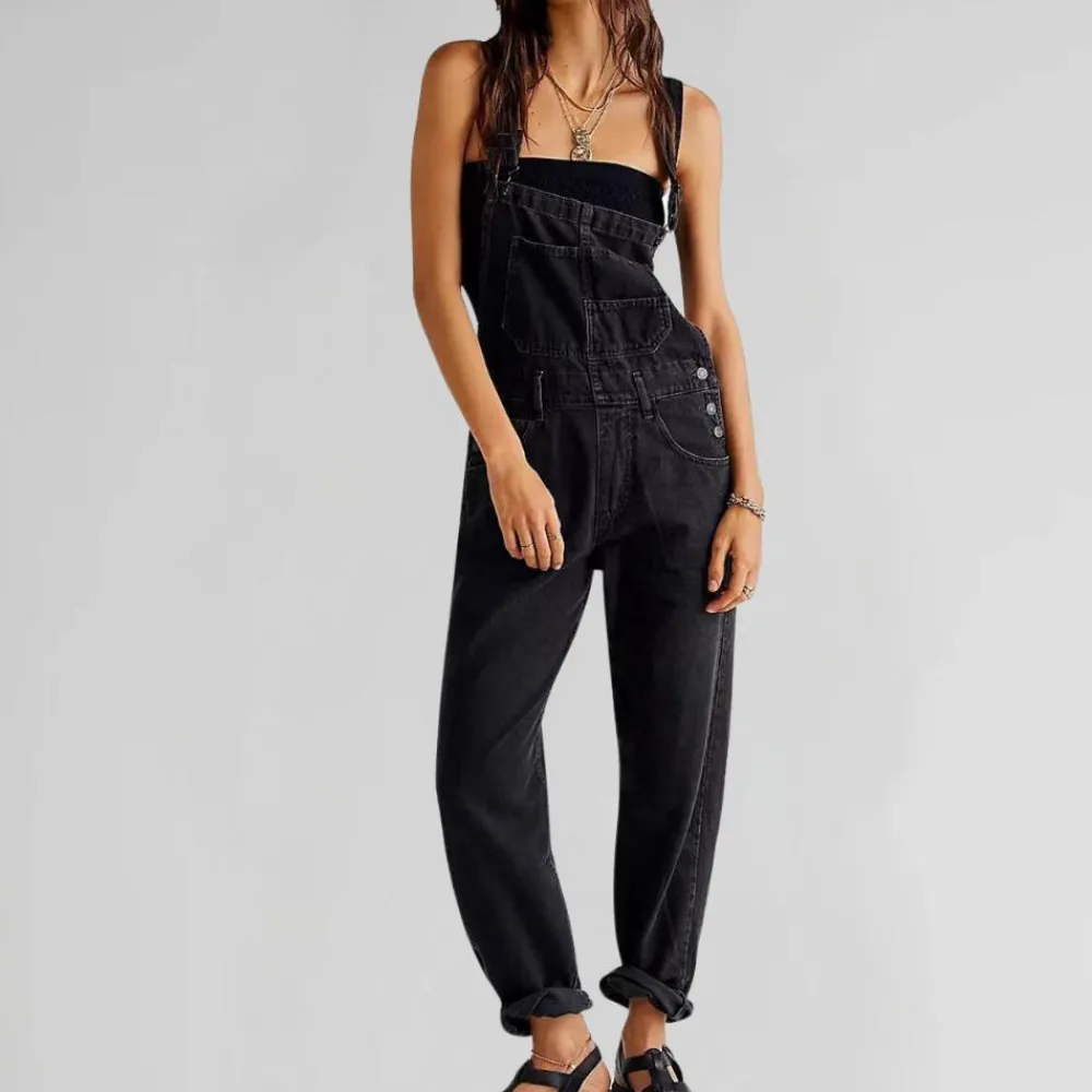 Met zijn comfortabele, casual stijl is de Valeria Trendy denim jumpsuit voor dames ideaal voor buitenactiviteiten en geeft je tegelijkertijd een stijlvolle uitstraling. Gemaakt van een stevige en comfortabele stof die je bewegingsvrijheid biedt.