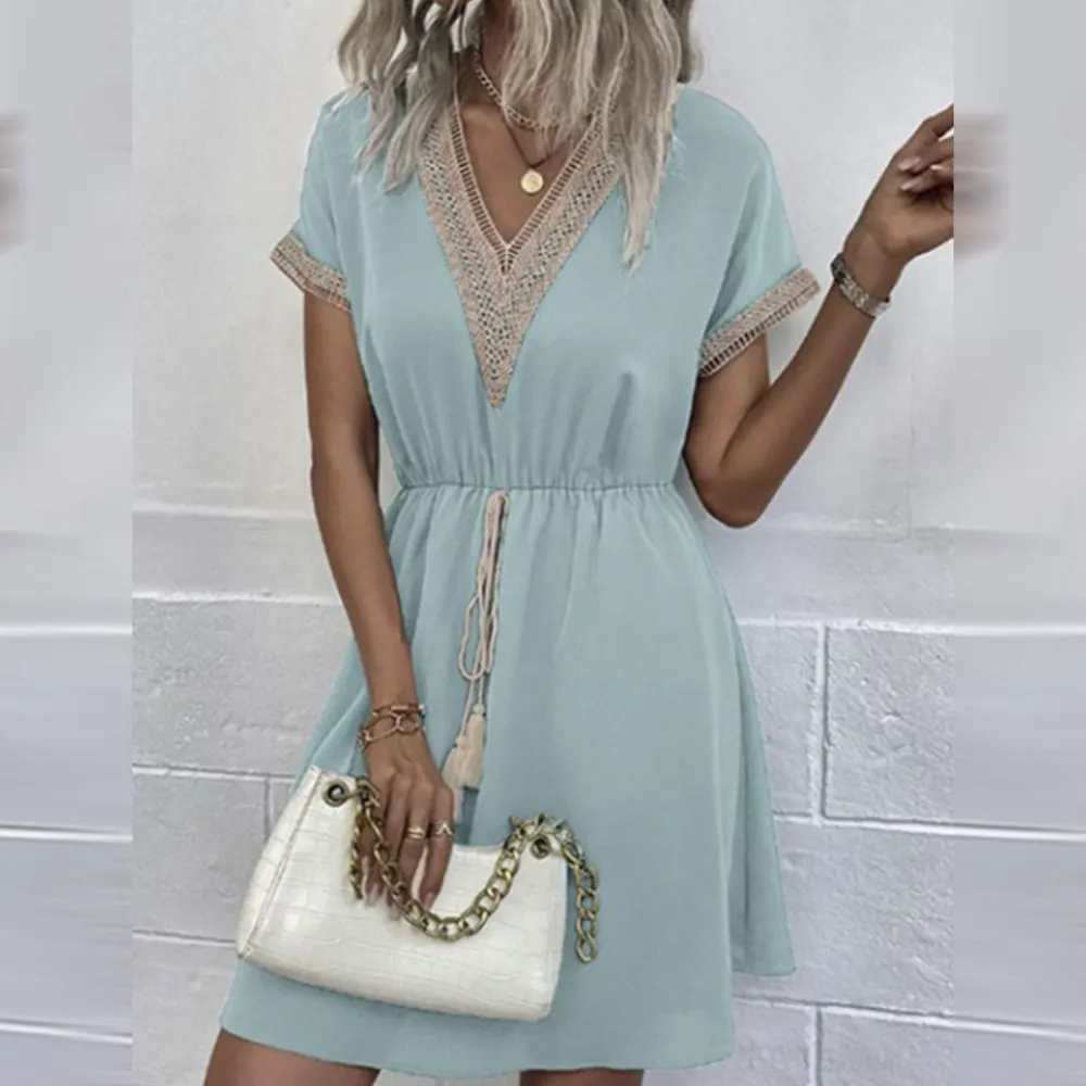 Omarm de essentie van de zomer met onze VIVIEN Elegante mini jurk en ervaar de perfecte mix van stijl en comfort.