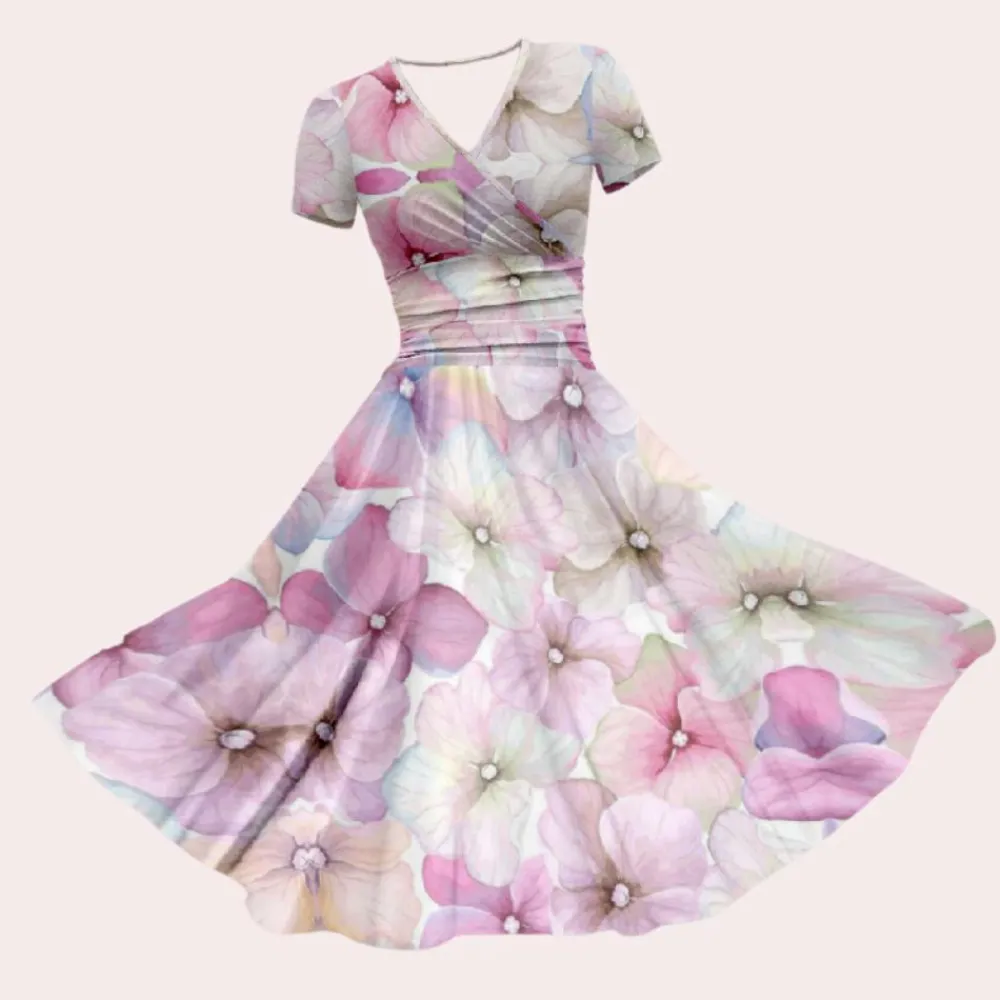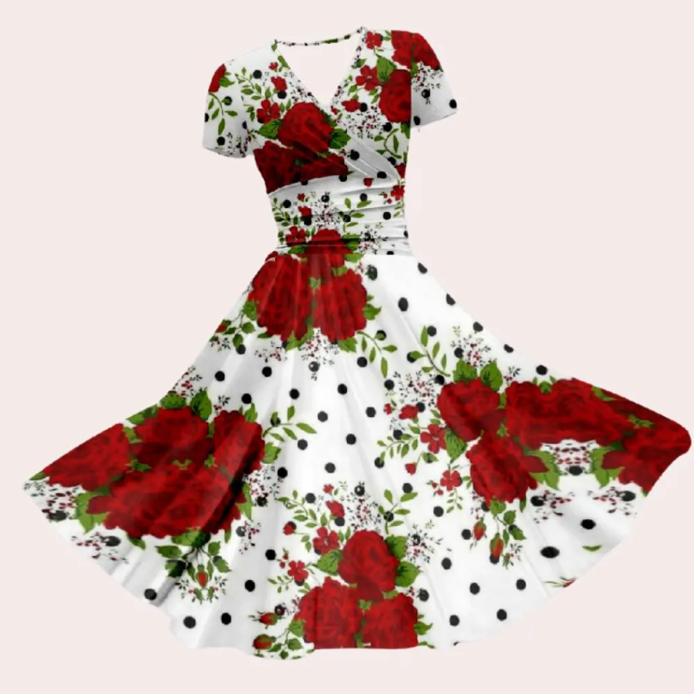 Deze jurk is ideaal voor lente- en zomerdagen en straalt veelzijdigheid uit, waardoor hij perfect is om elke dag te dragen of op vakantie. Het bloemenpatroon voegt een levendige touch toe aan je outfit en zorgt ervoor dat je opvalt met moeiteloze charme.