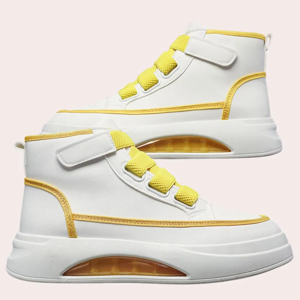 - Stijlvol Ontwerp: Deze hoge schoenen voegen een modern accent toe aan elke outfit en passen bij jeans en joggers.