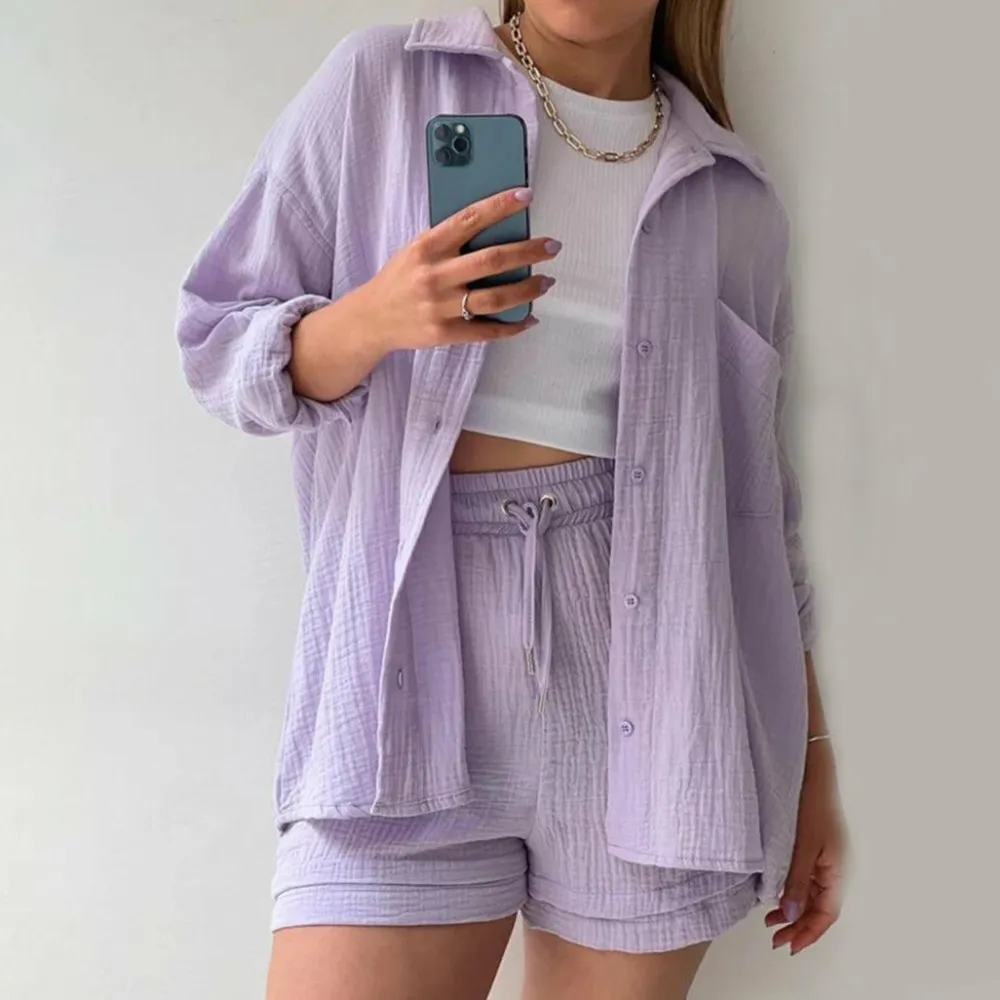 Deze set bestaat uit een stijlvol shirt met lange mouwen en een comfortabele short, gemaakt van hoogwaardige materialen die een luchtige en ademende textuur bieden. De set is perfect voor warme zomerdagen wanneer je er op je best uit wilt zien.