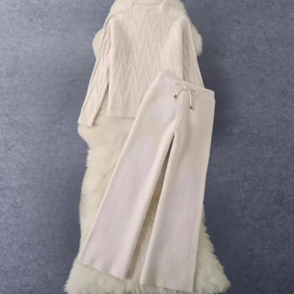De Graciela Stijlvol gebreid 2-delig setje voor dames brengt tijdloze elegantie in je garderobe. Speciaal ontworpen voor vrouwen die op zoek zijn naar comfort én stijl. Deze set, gemaakt van fijn gebreide stof, biedt de hele dag door draagcomfort en valt prachtig om je figuur te accentueren.