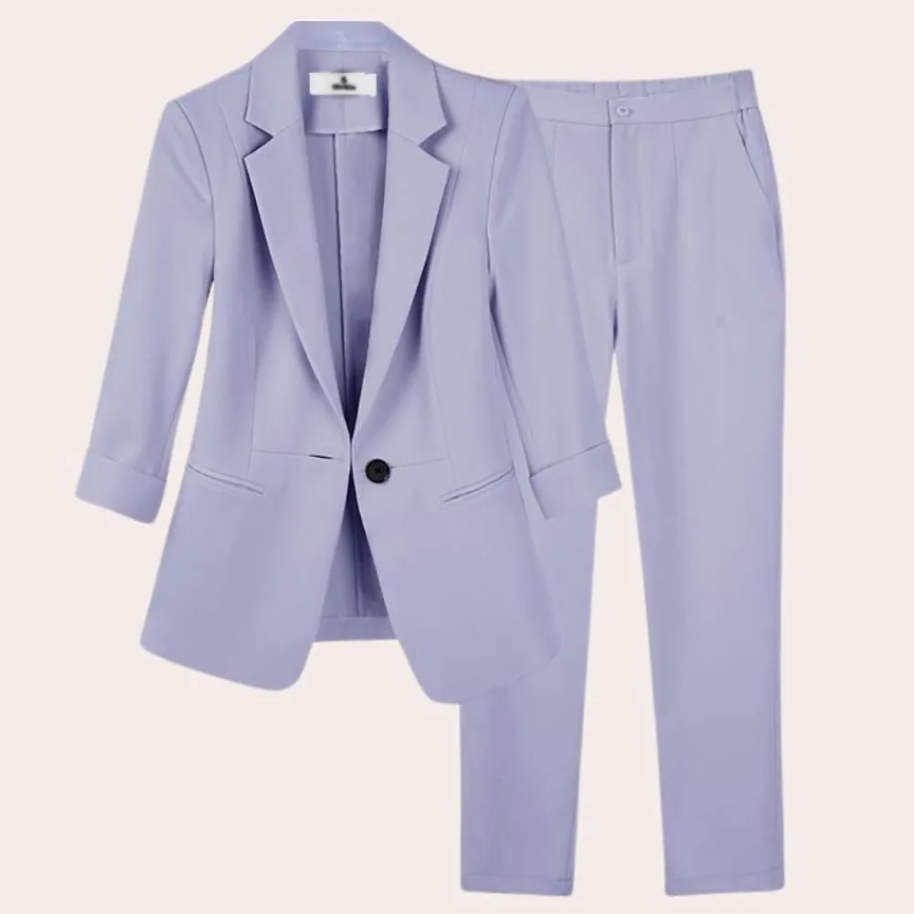 Deze set, met een perfect op elkaar afgestemde blazer en broek, biedt de mogelijkheid om zowel professionele als casual looks te creëren.
