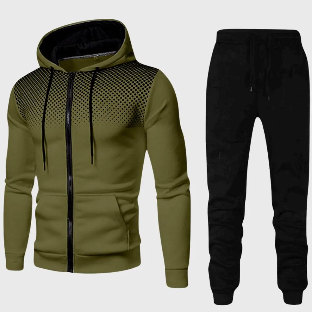 Ontdek het Herleif trainingspak voor heren, inclusief een trainingsbroek en een met capuchon. Dit joggingspak voor heren is beschikbaar in de kleuren legergroen, zwart, rood, donkergrijs, khaki, donkerblauw en wit. Perfect voor elke activiteit, van sporten tot ontspannen thuis.