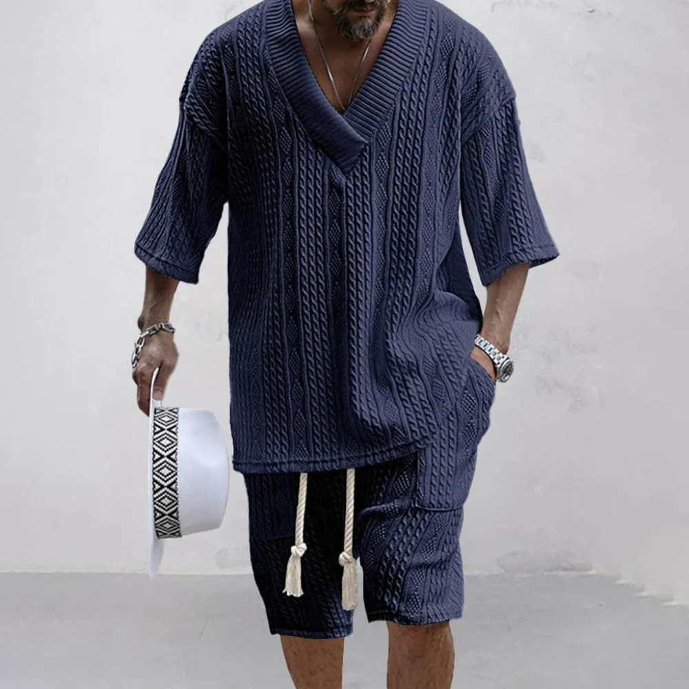 Rock in stijl met onze NICOLÒ Stijlvol gebreid shirt en shortset.