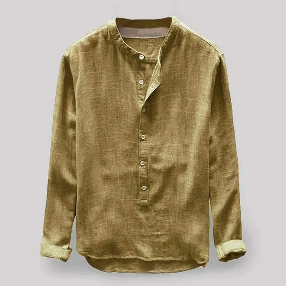 Casual henley kraag shirts, mandarijn kraag, eenvoudige stijl, effen kleur, slanke pasvorm, lange mouwen (kunnen worden opgerold), knoopsluiting, afgeronde zoom, knoopsluiting.