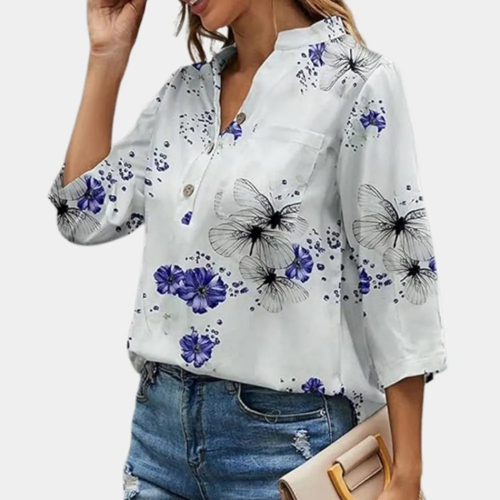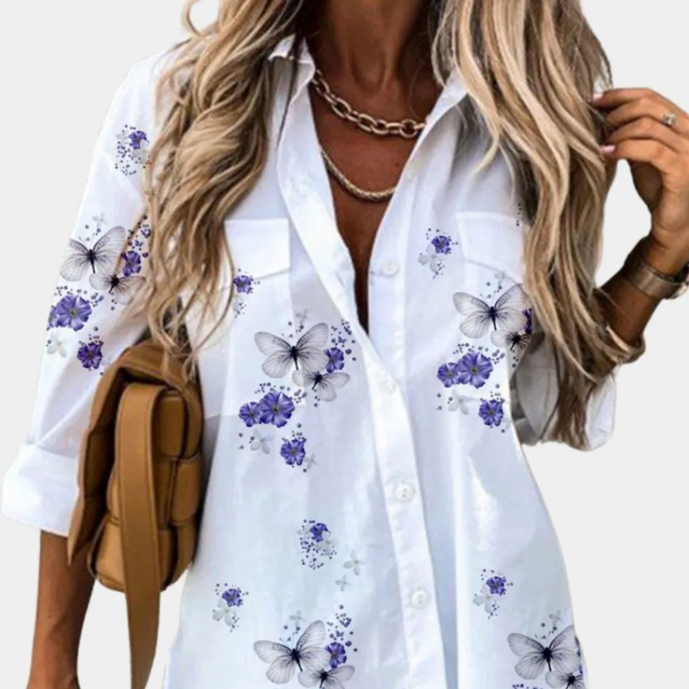 “Ik ben helemaal weg van deze blouse! Hij is zo comfortabel en stijlvol. Ik kan niet wachten om hem altijd te dragen.”