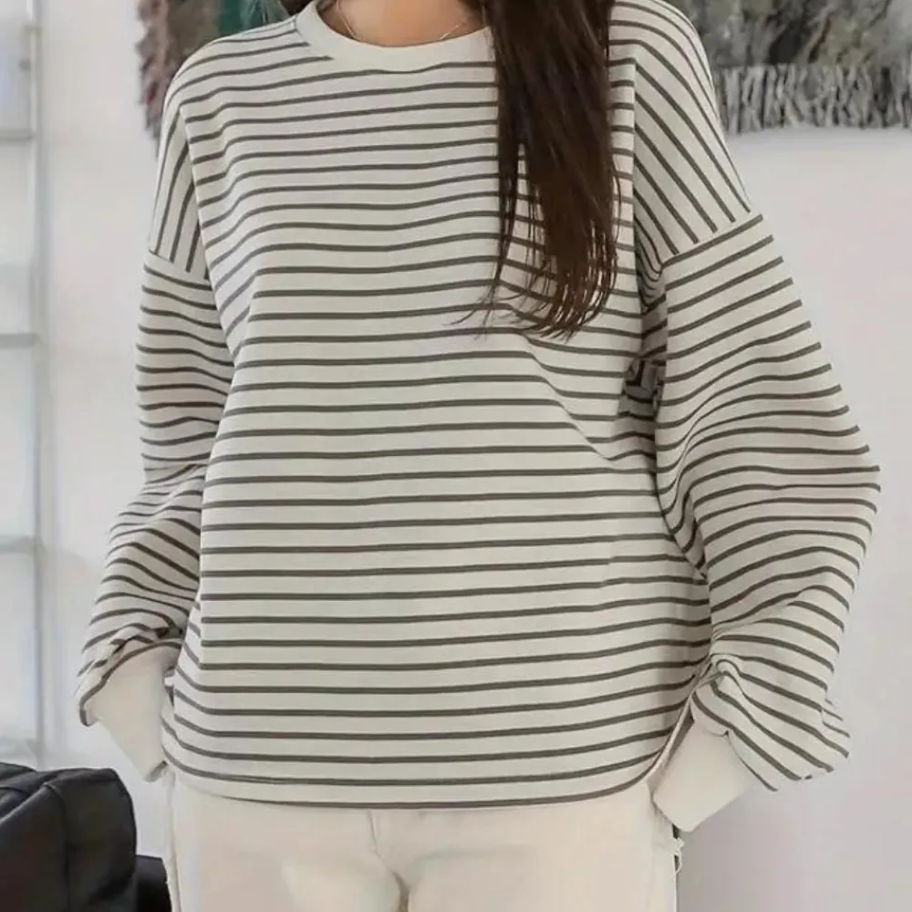 Met de CHERYL – Comfortabel Gestreept Sweatshirt voor Dames heb je een betrouwbaar kledingstuk dat moeiteloos stijl toevoegt aan je dagelijkse garderobe.