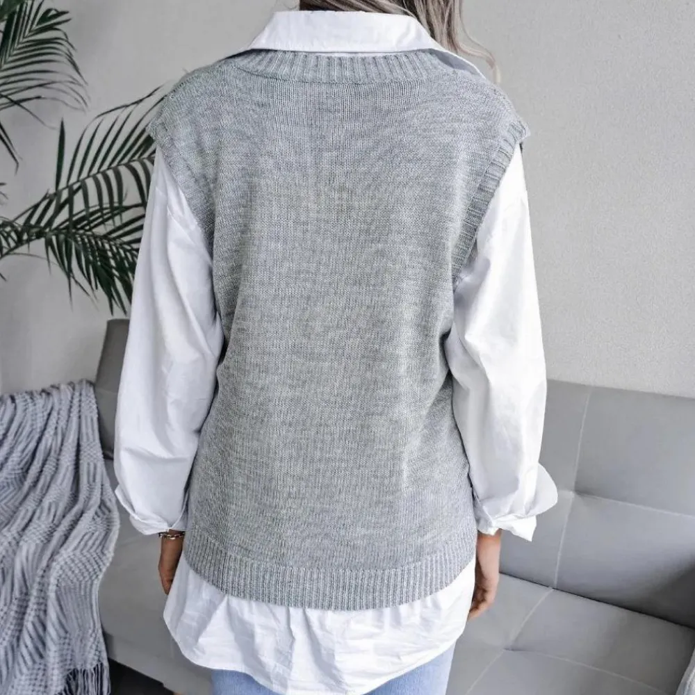 Arlette Dames V-hals Gebreid Vest: Elegante Laagjes voor Lente en Herfst!