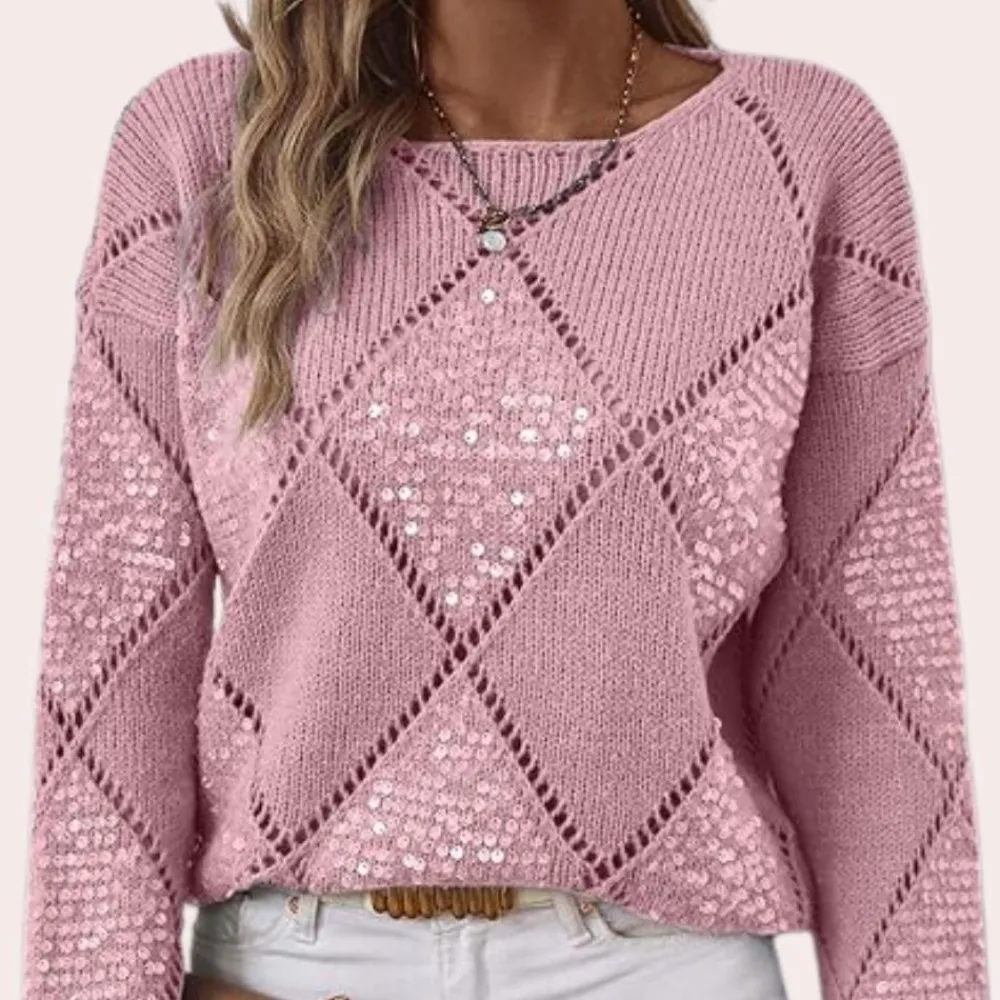 AZLYN – Geraffineerde Trui Met Pailletten voor Dames is ontworpen om moeiteloos luxe toe te voegen aan je garderobe. Dankzij de glanzende details is deze trui ideaal om op te vallen tijdens informele bijeenkomsten, avonden uit of speciale evenementen.