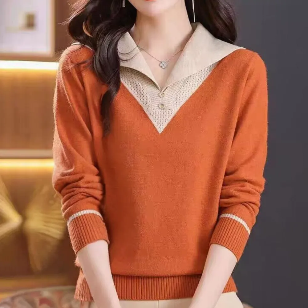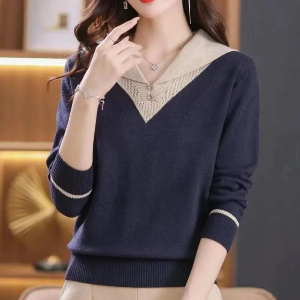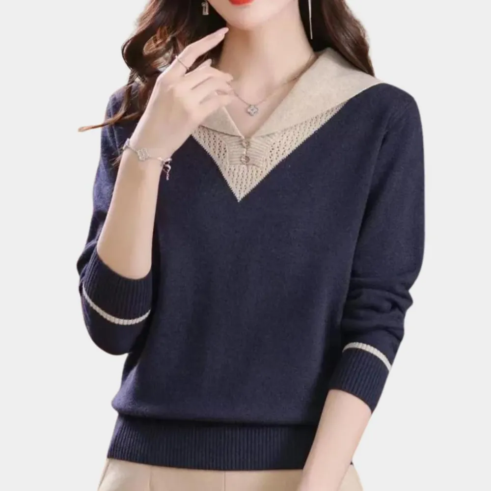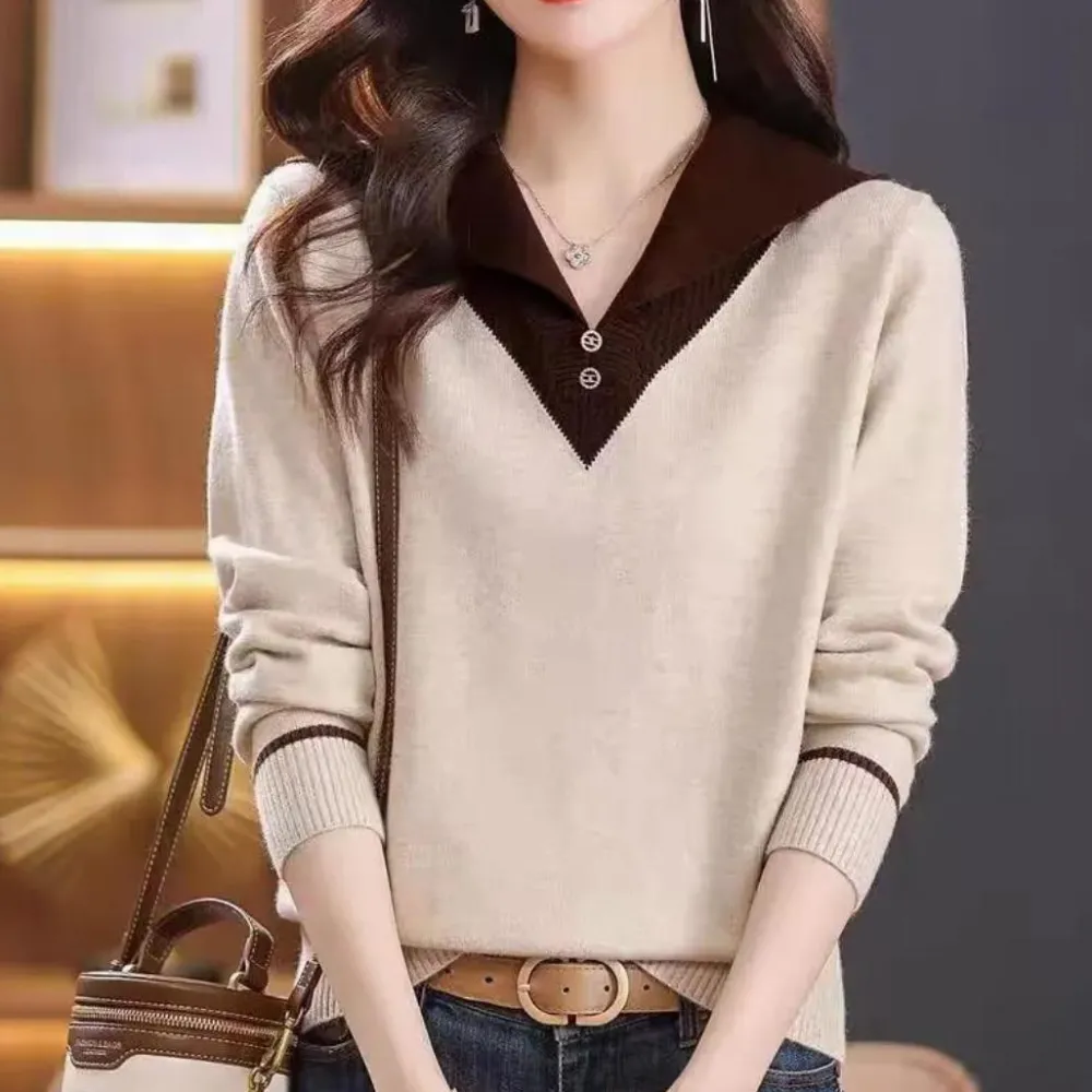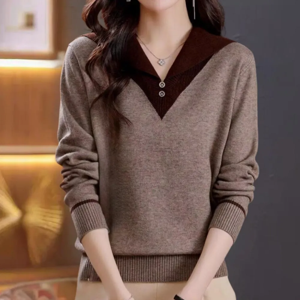 Deze trendy damestrui van Ciri is een must-have voor elke garderobe, met een uniek ontwerp dat een elegante V-hals, knoopsluiting en stijlvolle patchworkdetails combineert.