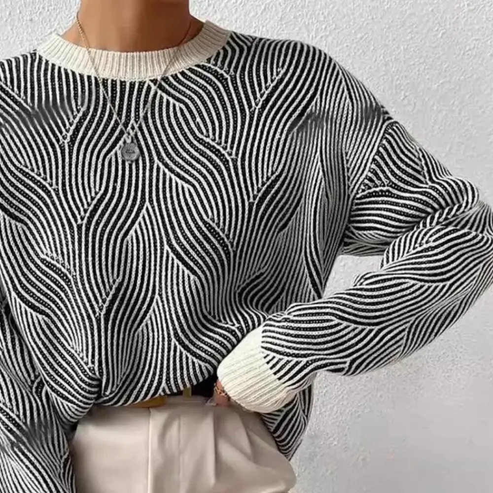 Stijlvol Ontwerp: De verfijnde structuur en het unieke breipatroon zorgen ervoor dat je er altijd goed uitziet in deze trui.