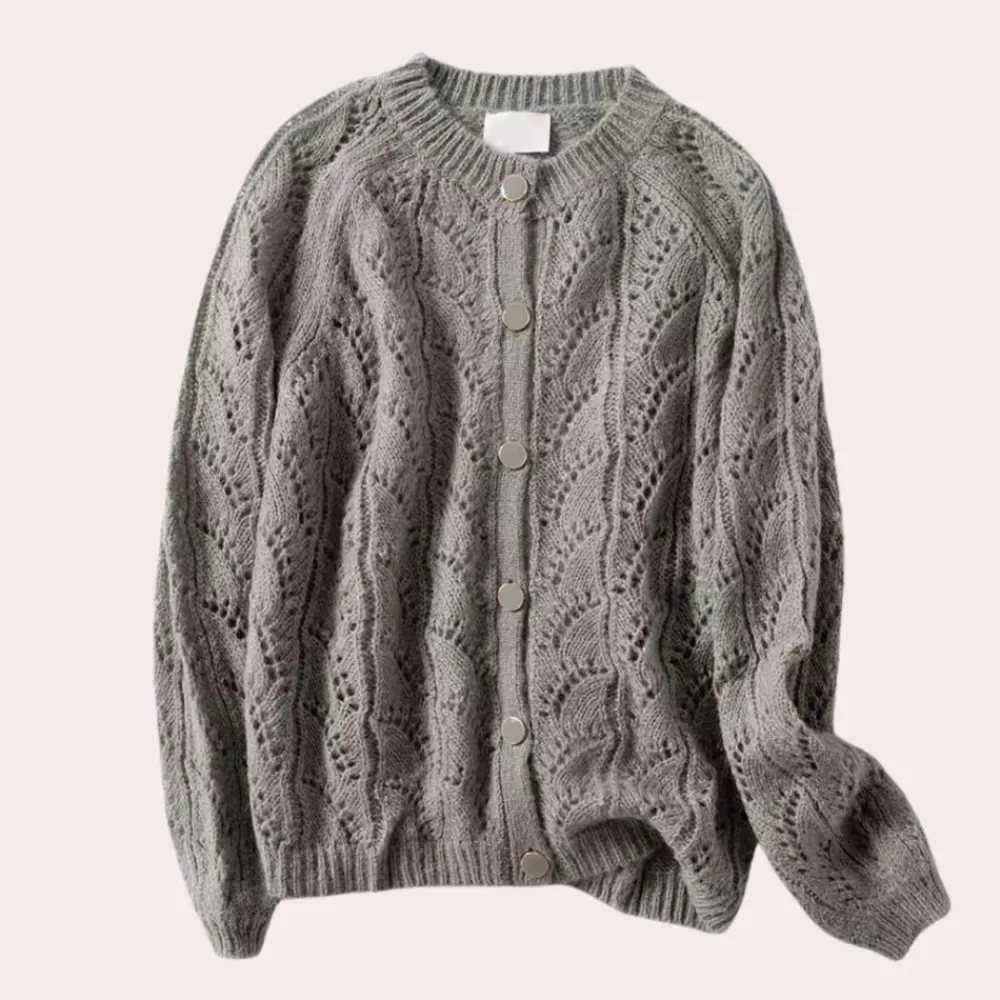 Deze cardigan is met aandacht voor detail ontworpen en biedt een harmonieuze mix van comfort en stijl. De zorgvuldig gekozen knopen voegen een subtiele elegantie toe, waardoor het een veelzijdig stuk is dat bij verschillende looks past.