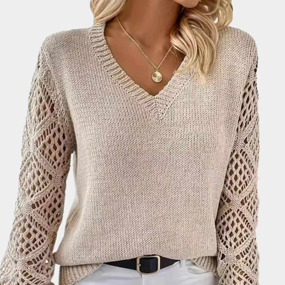 Hier heb je onze Liege Uitgeholde damestrui, Deze trui is zowel comfortabel als stijlvol voor het uitgaan, maar ook voor thuis op de bank. Deze trui is gemaakt van een comfortabele stof die geschikt is voor de lente, herfst en winter.