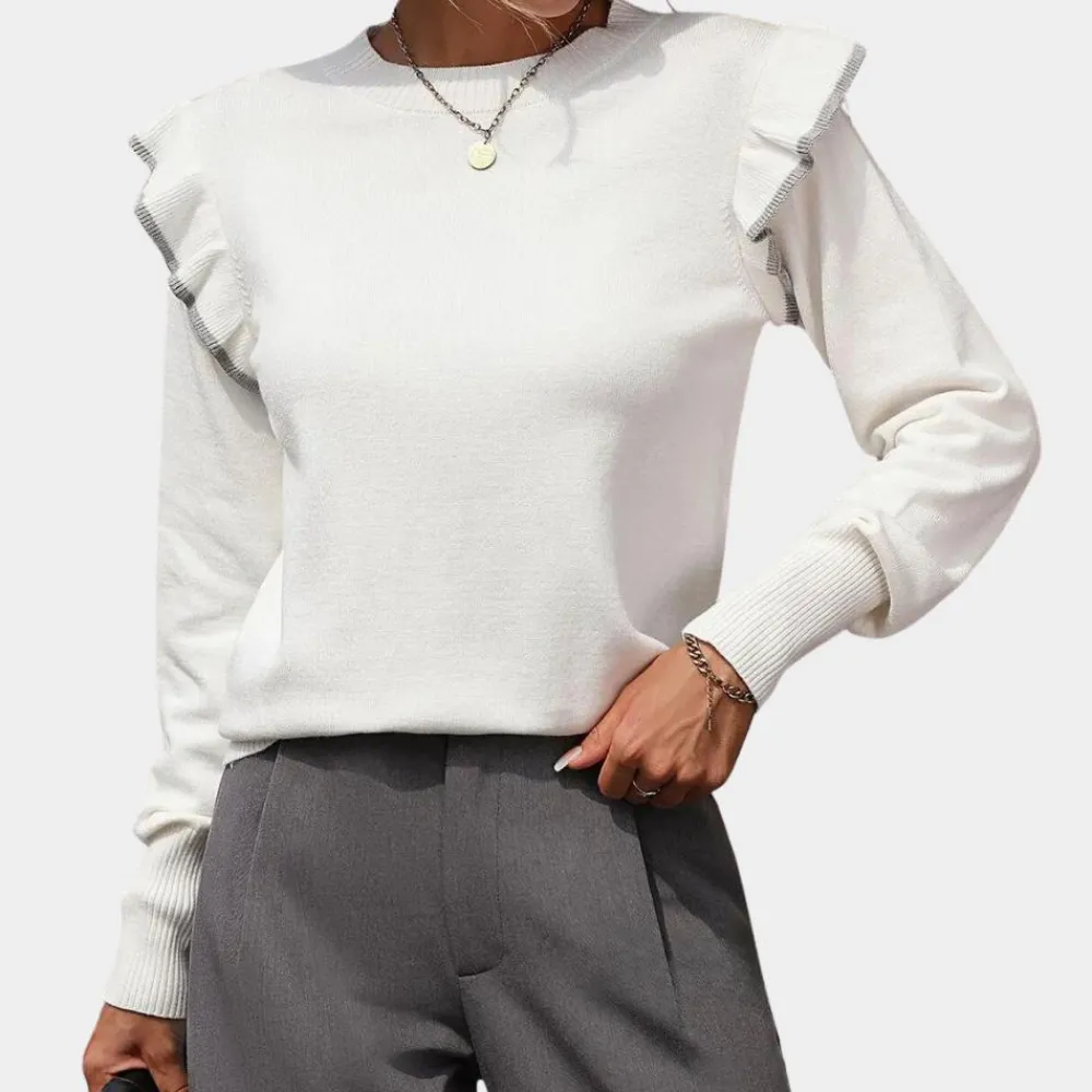 Maak kennis met de Sofia Gezellige Elegant Damestrui met Ruches, een charmante toevoeging aan elke fashion-forward garderobe die zowel warmte als elegantie belichaamt. Deze damestrui met ruches is gemaakt van zachte, ademende stof en biedt ongeëvenaard comfort om de hele dag te dragen. De trui is perfect voor elk seizoen en voegt een speels maar geraffineerd accent toe, zodat je opvalt tijdens een casual brunch of een formele bijeenkomst.